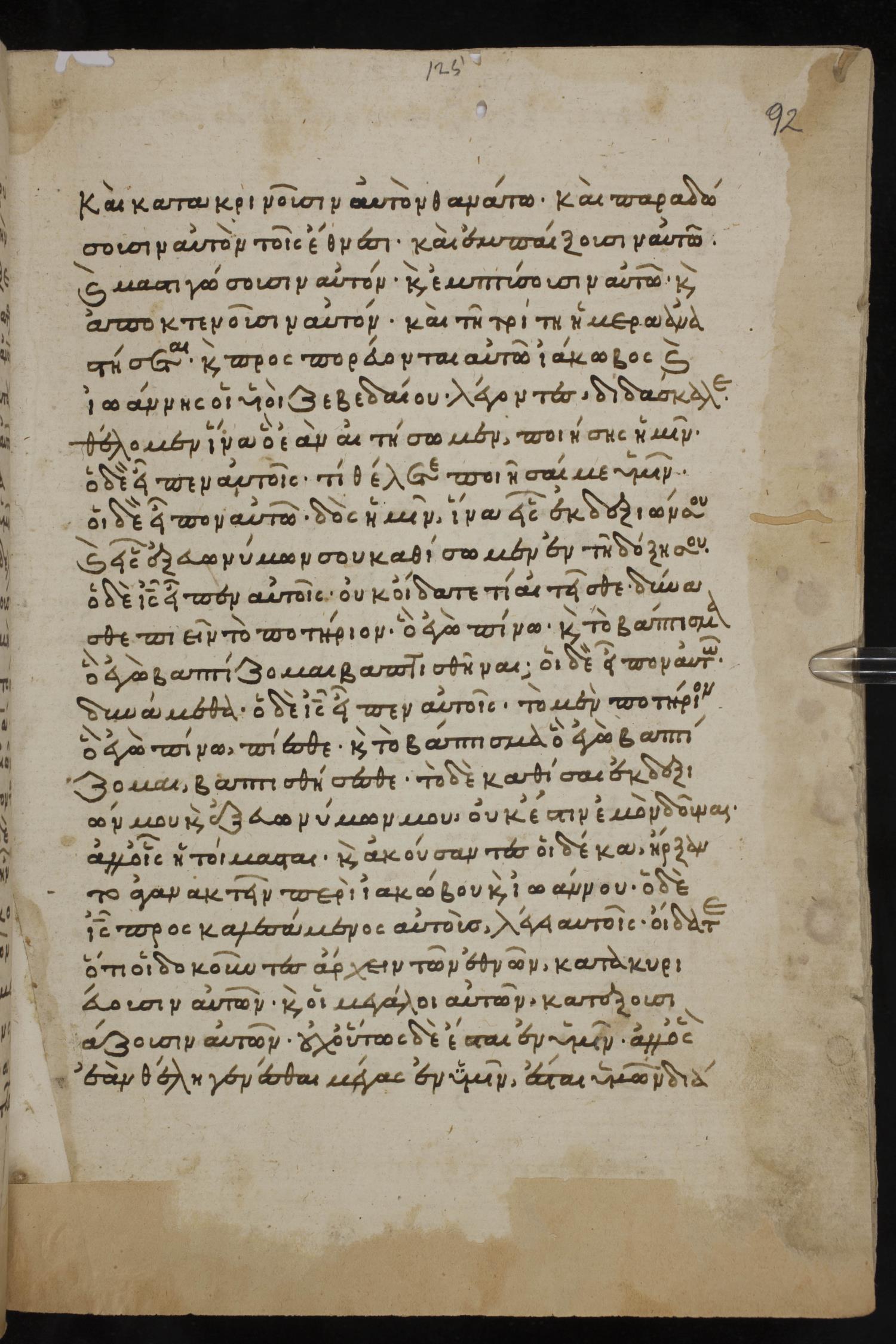 Thirteenth century minuscule of the Gospels, Apostolos, Paul, and Revelation on paper; 412 leaves, 1 column, 24-28 lines per column. Images were taken at the National Library of Greece in Athens.