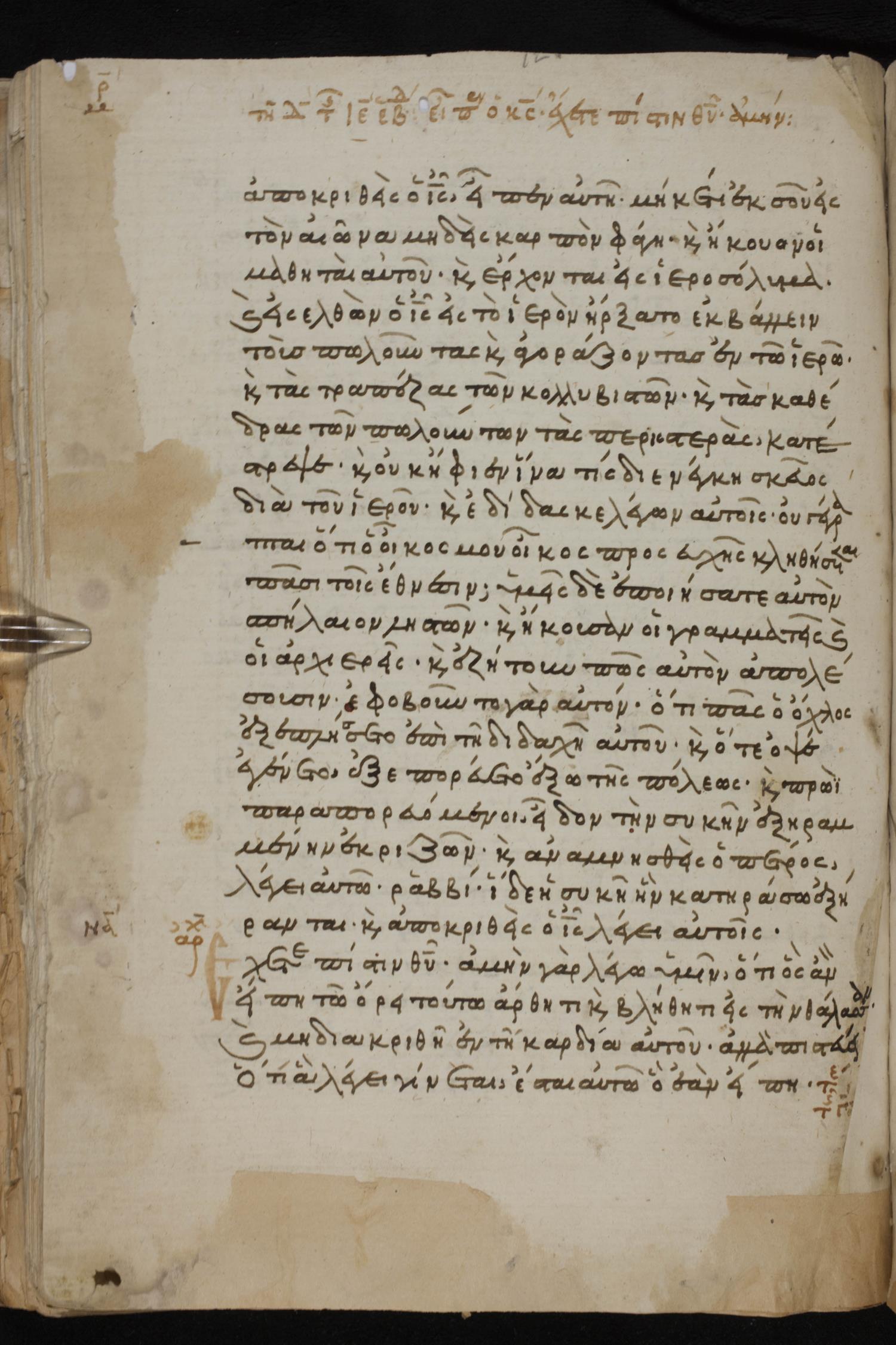 Thirteenth century minuscule of the Gospels, Apostolos, Paul, and Revelation on paper; 412 leaves, 1 column, 24-28 lines per column. Images were taken at the National Library of Greece in Athens.