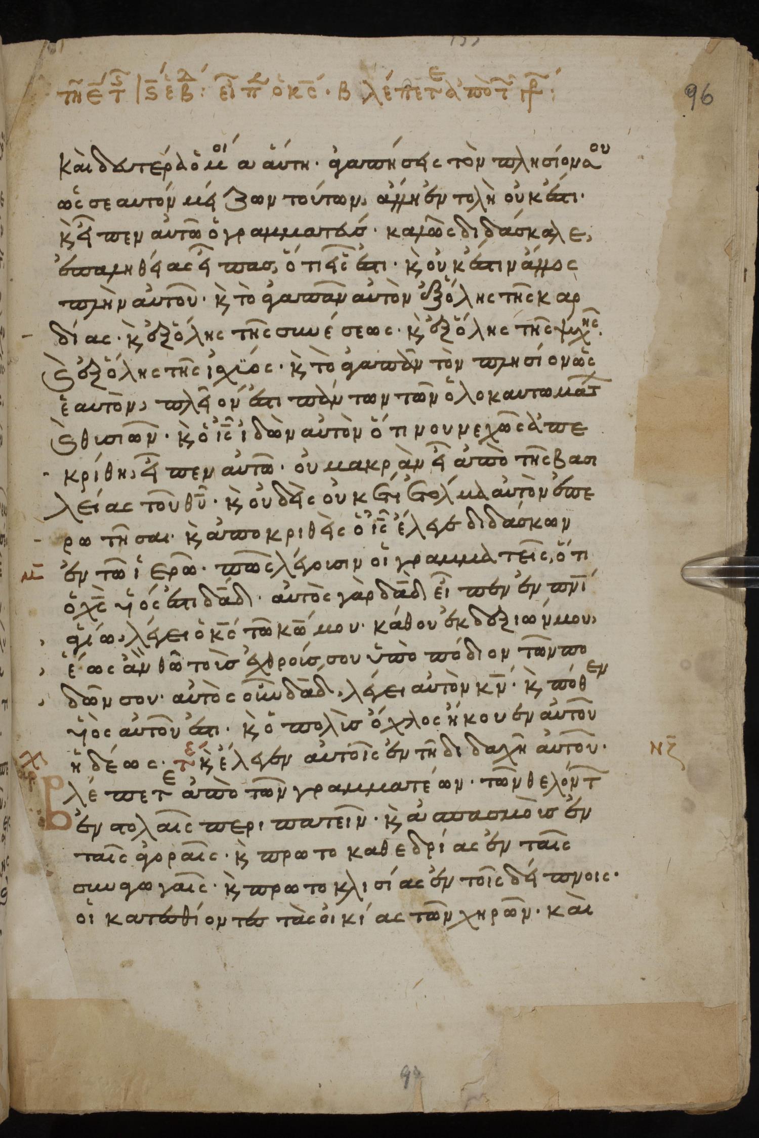 Thirteenth century minuscule of the Gospels, Apostolos, Paul, and Revelation on paper; 412 leaves, 1 column, 24-28 lines per column. Images were taken at the National Library of Greece in Athens.