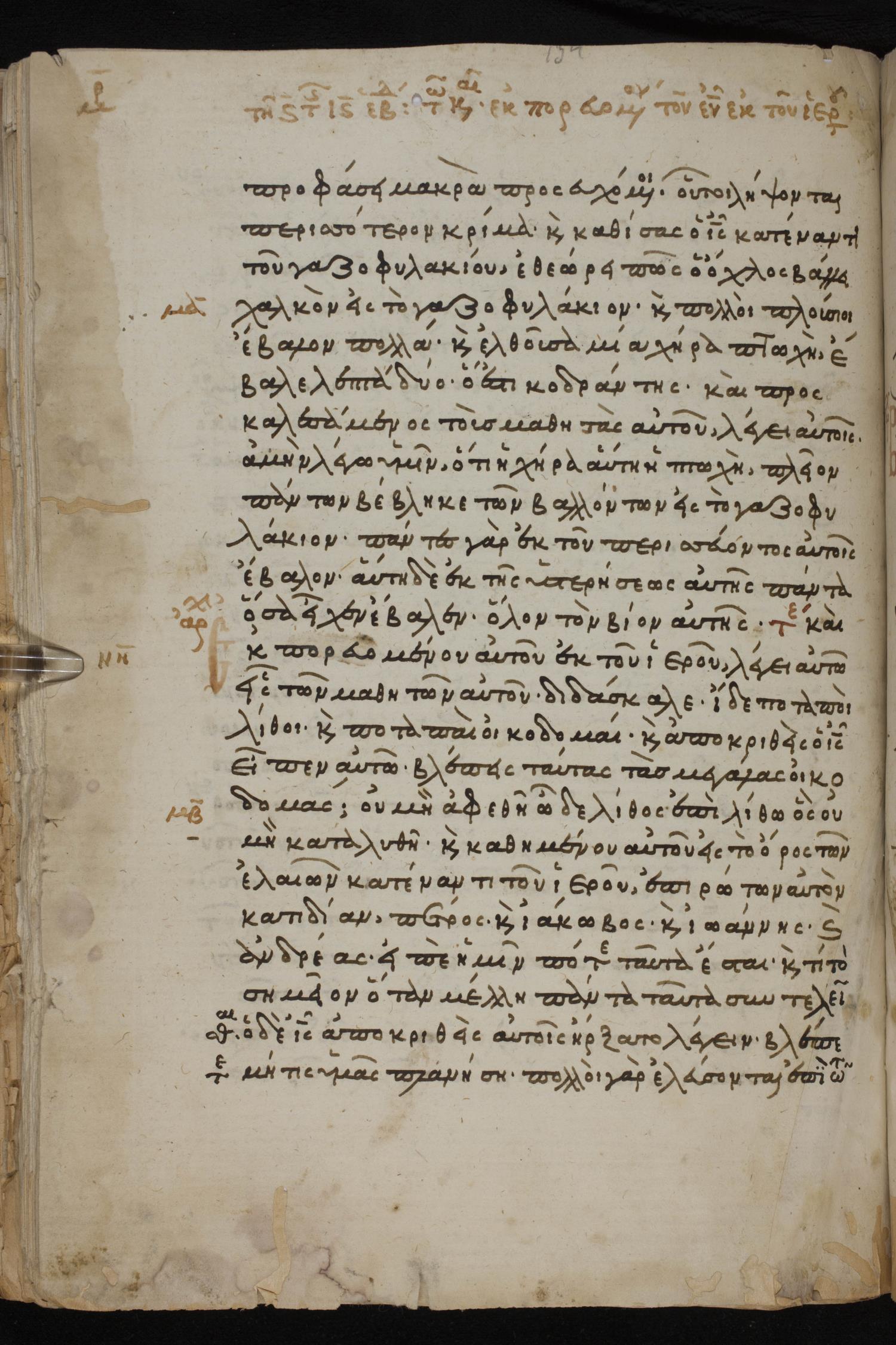 Thirteenth century minuscule of the Gospels, Apostolos, Paul, and Revelation on paper; 412 leaves, 1 column, 24-28 lines per column. Images were taken at the National Library of Greece in Athens.