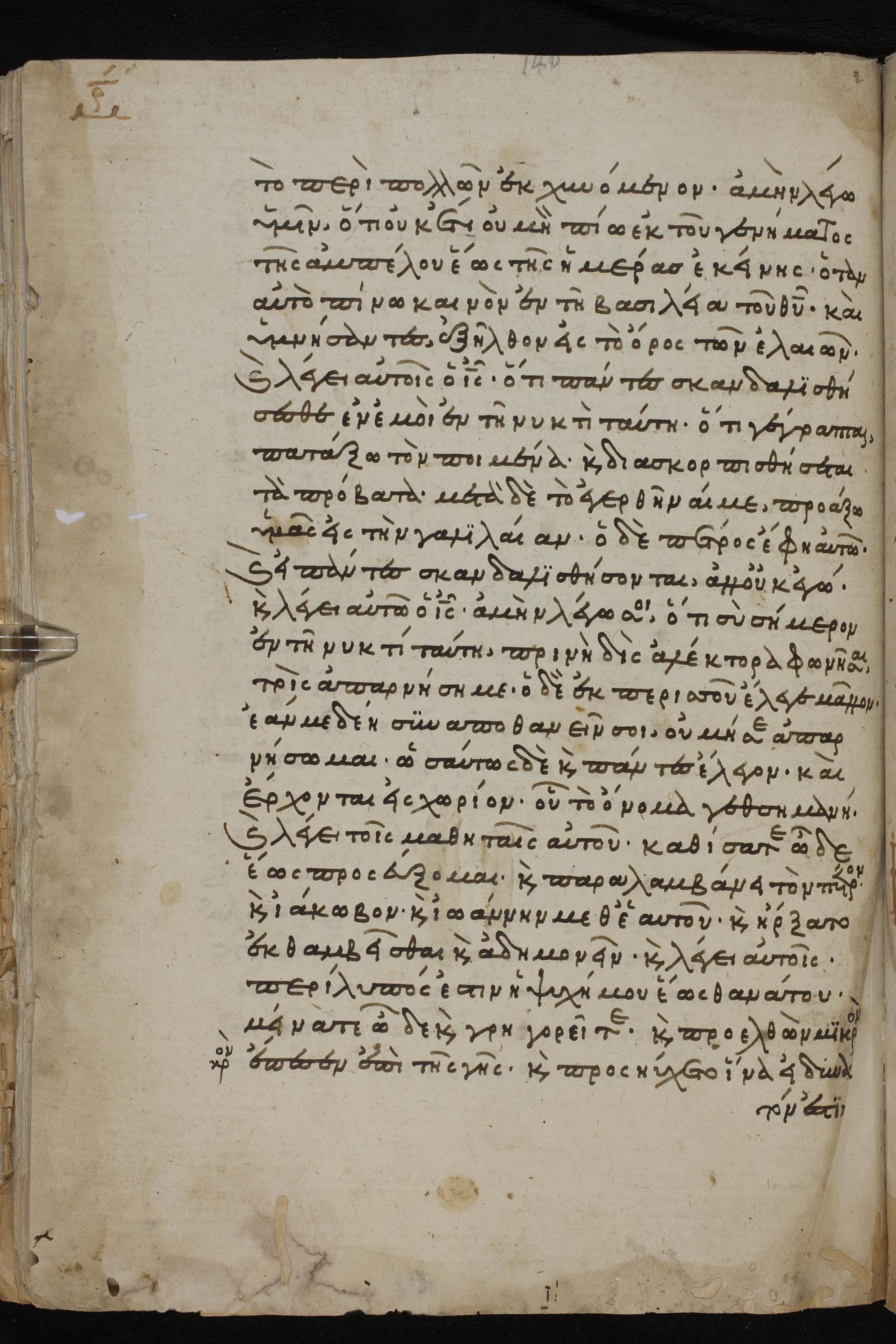 Thirteenth century minuscule of the Gospels, Apostolos, Paul, and Revelation on paper; 412 leaves, 1 column, 24-28 lines per column. Images were taken at the National Library of Greece in Athens.