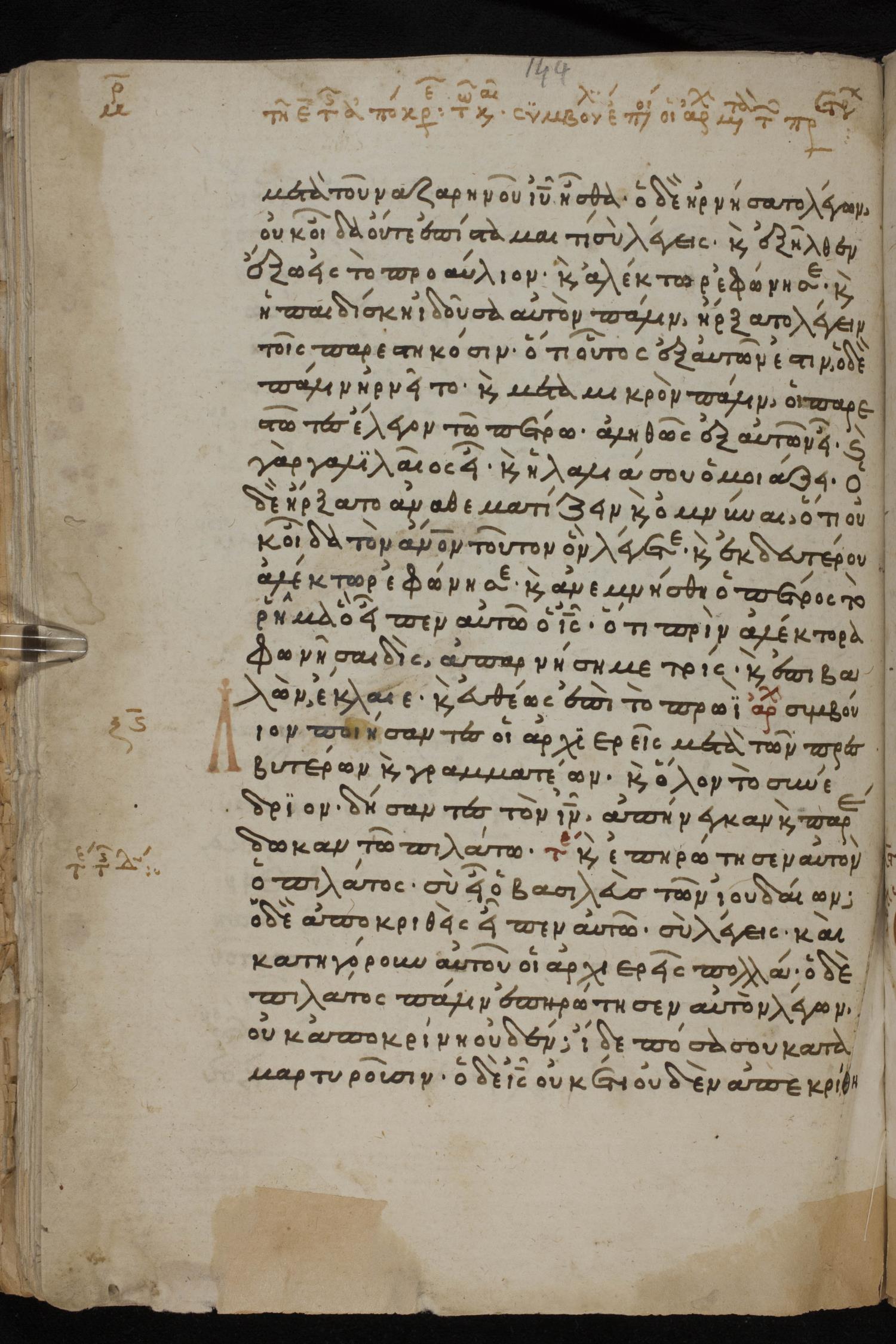 Thirteenth century minuscule of the Gospels, Apostolos, Paul, and Revelation on paper; 412 leaves, 1 column, 24-28 lines per column. Images were taken at the National Library of Greece in Athens.