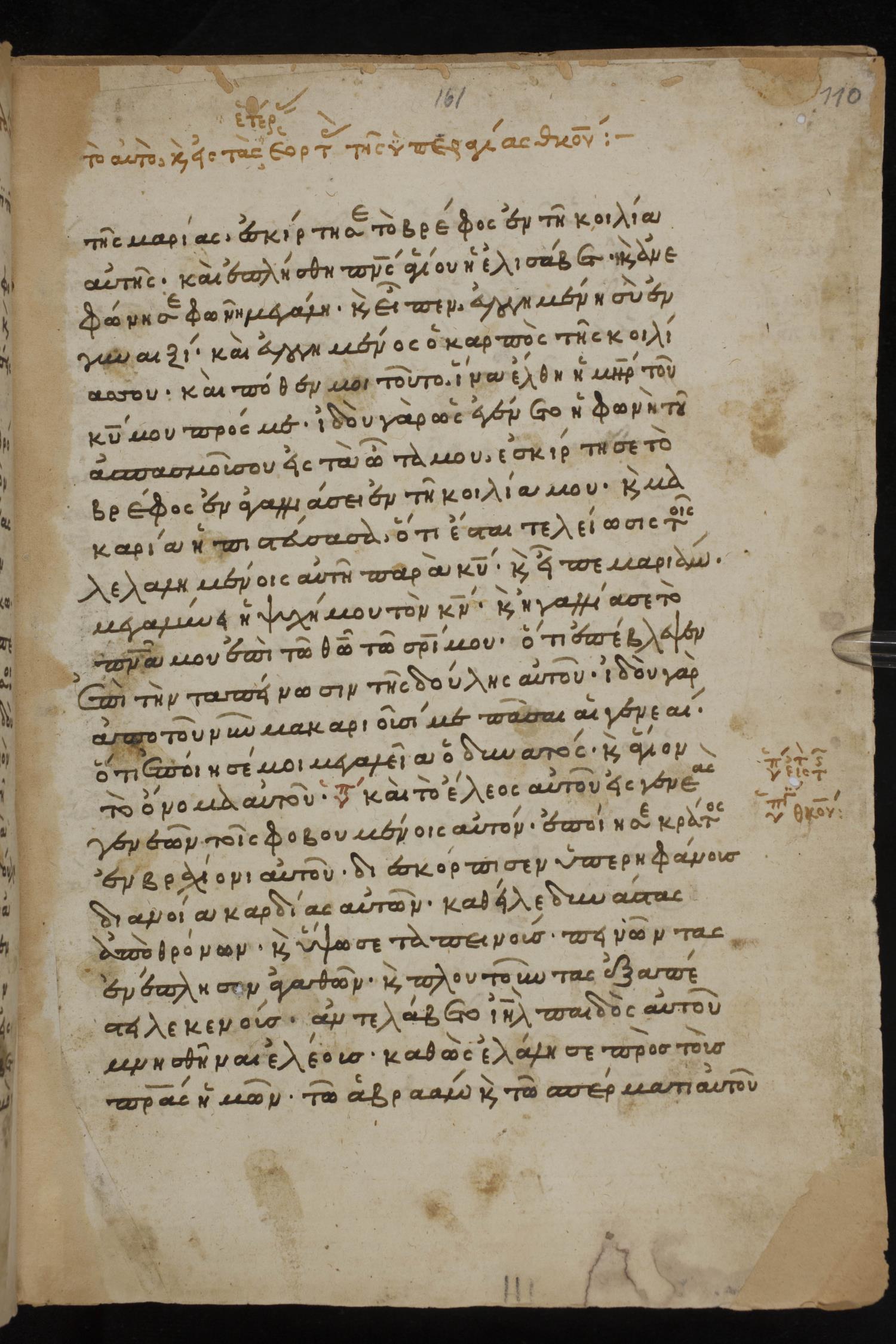 Thirteenth century minuscule of the Gospels, Apostolos, Paul, and Revelation on paper; 412 leaves, 1 column, 24-28 lines per column. Images were taken at the National Library of Greece in Athens.