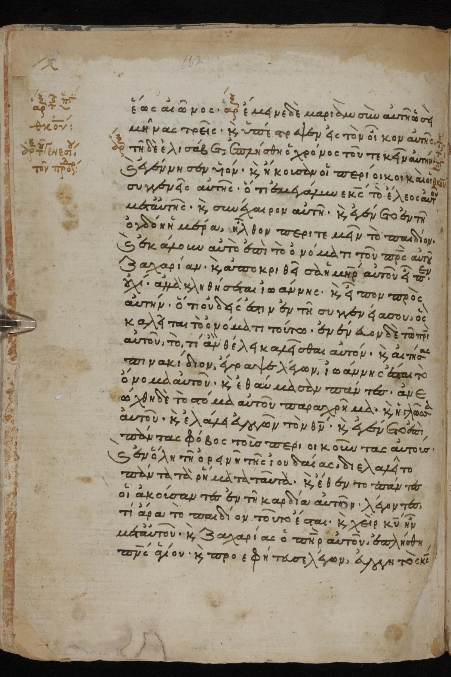 Thirteenth century minuscule of the Gospels, Apostolos, Paul, and Revelation on paper; 412 leaves, 1 column, 24-28 lines per column. Images were taken at the National Library of Greece in Athens.