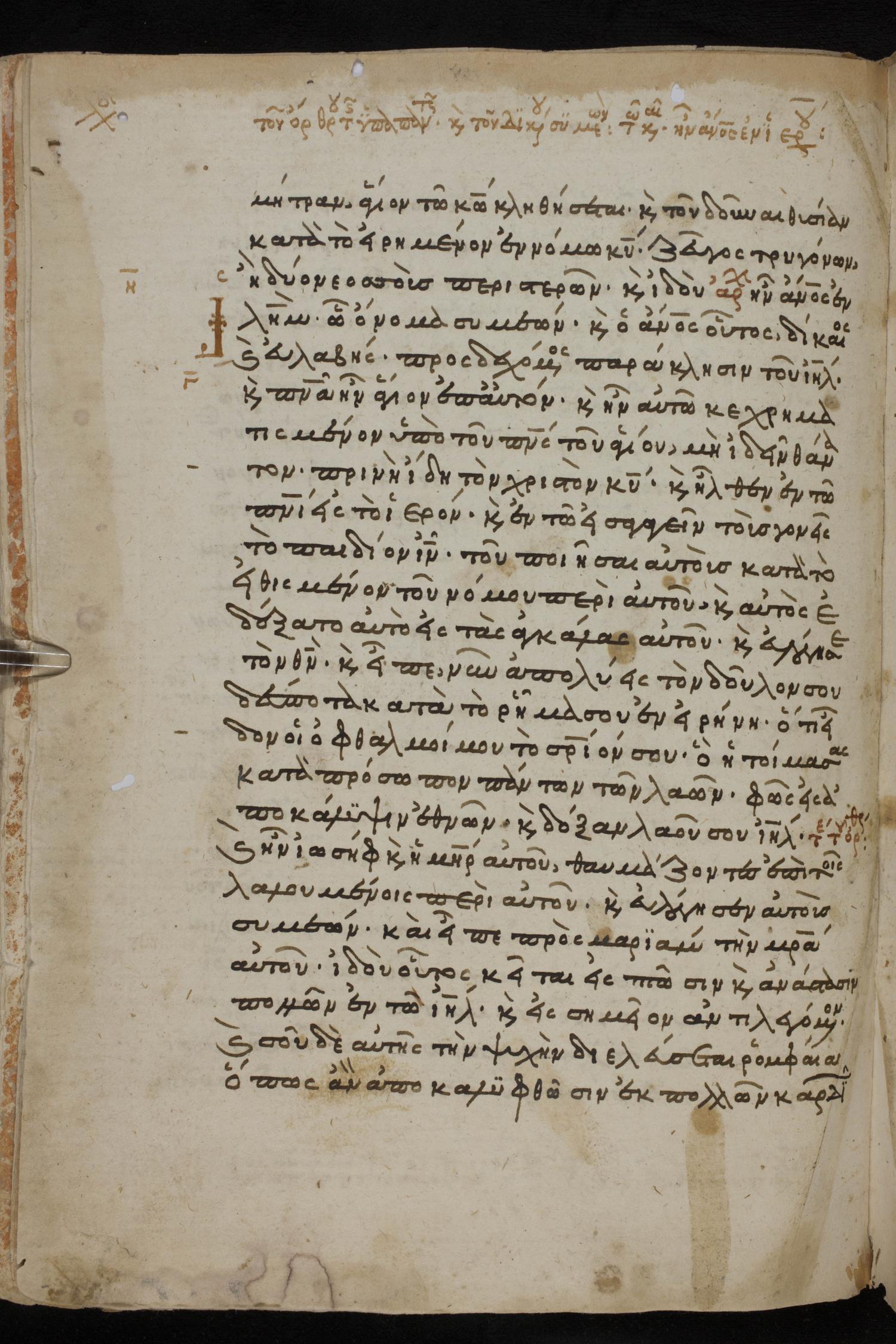 Thirteenth century minuscule of the Gospels, Apostolos, Paul, and Revelation on paper; 412 leaves, 1 column, 24-28 lines per column. Images were taken at the National Library of Greece in Athens.