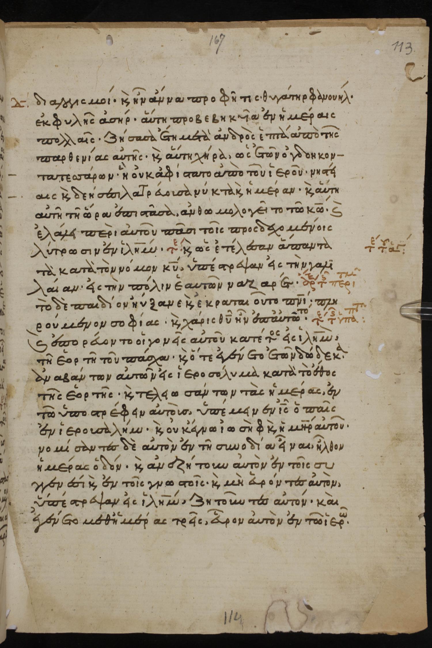Thirteenth century minuscule of the Gospels, Apostolos, Paul, and Revelation on paper; 412 leaves, 1 column, 24-28 lines per column. Images were taken at the National Library of Greece in Athens.