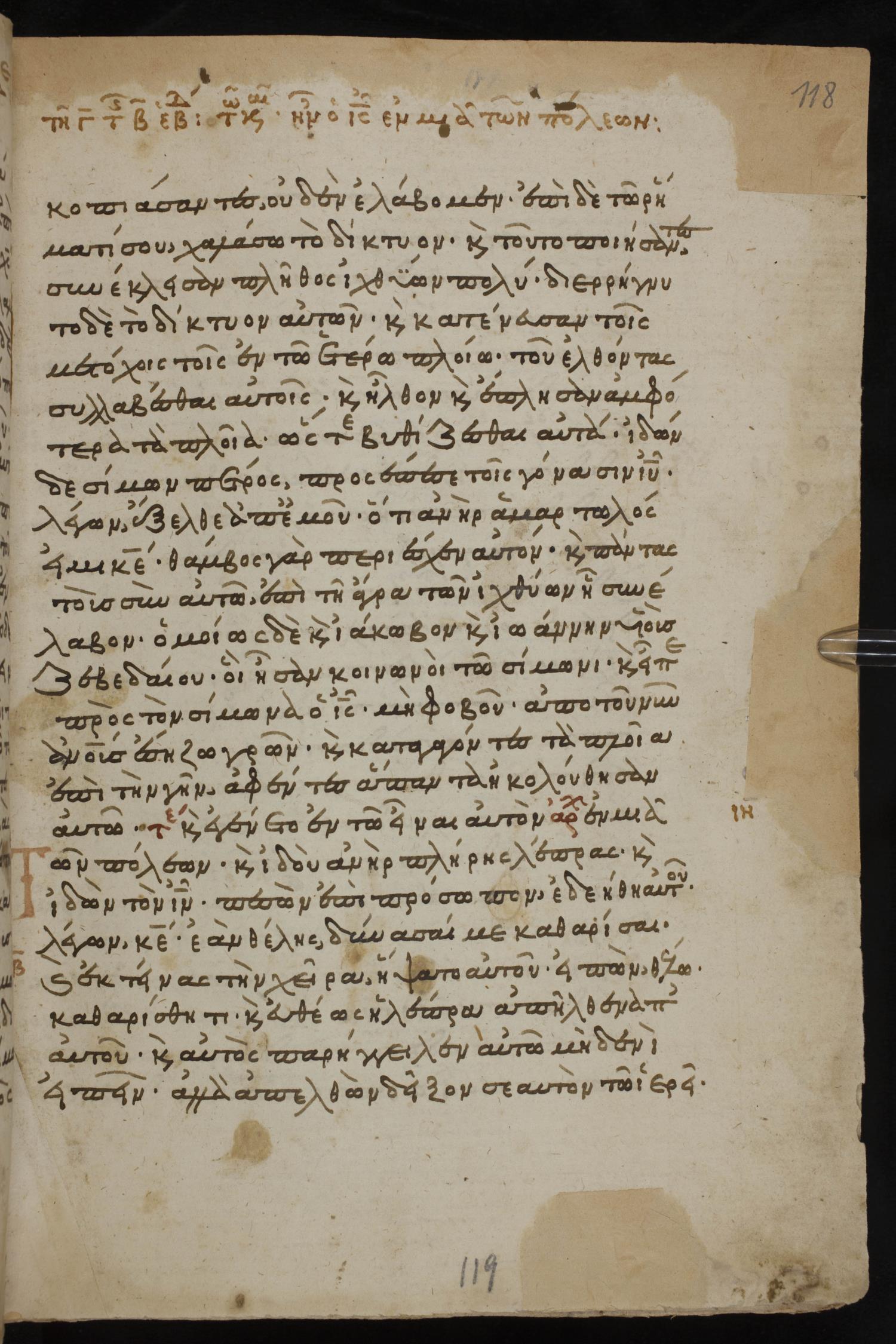 Thirteenth century minuscule of the Gospels, Apostolos, Paul, and Revelation on paper; 412 leaves, 1 column, 24-28 lines per column. Images were taken at the National Library of Greece in Athens.