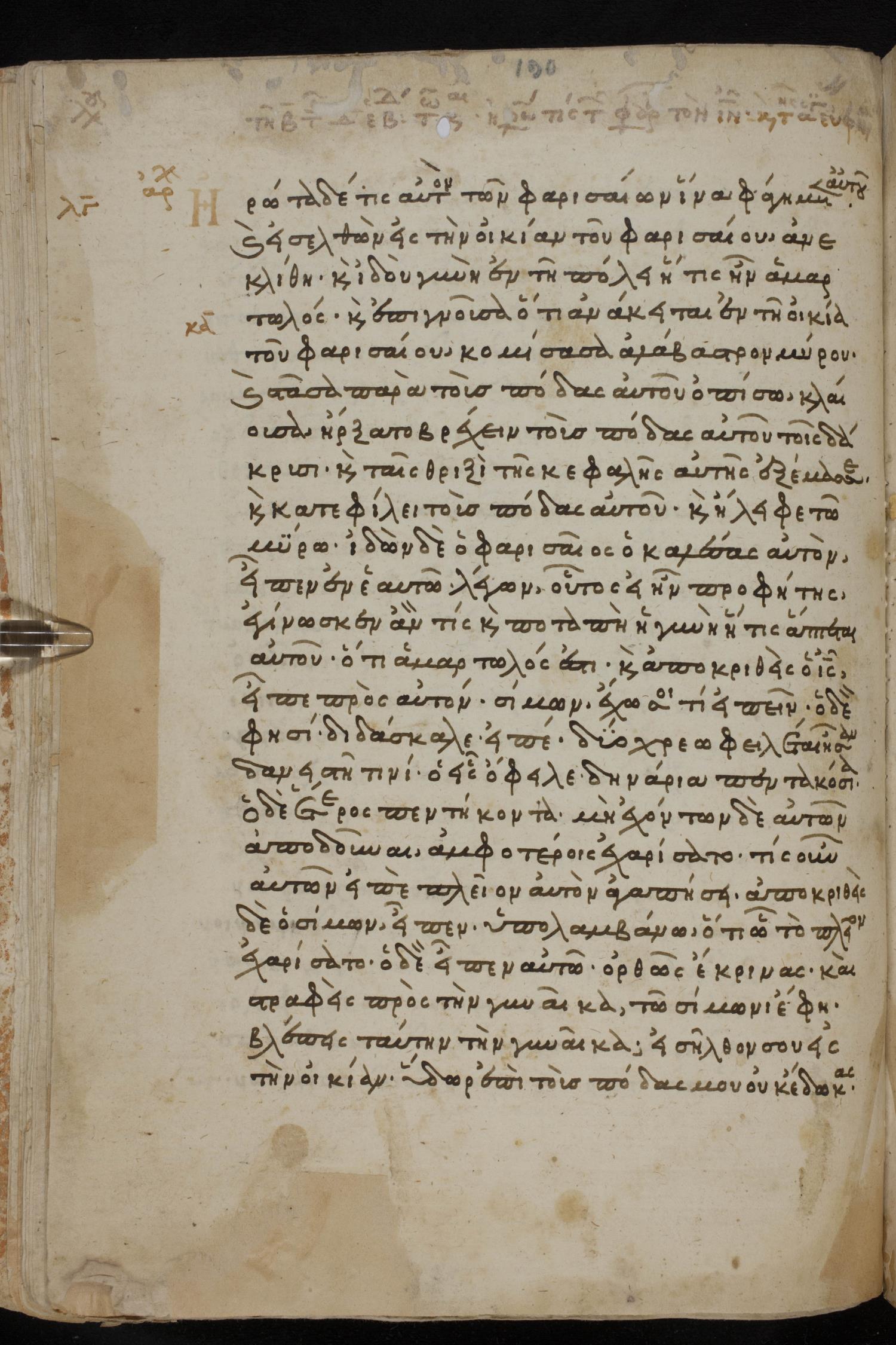 Thirteenth century minuscule of the Gospels, Apostolos, Paul, and Revelation on paper; 412 leaves, 1 column, 24-28 lines per column. Images were taken at the National Library of Greece in Athens.