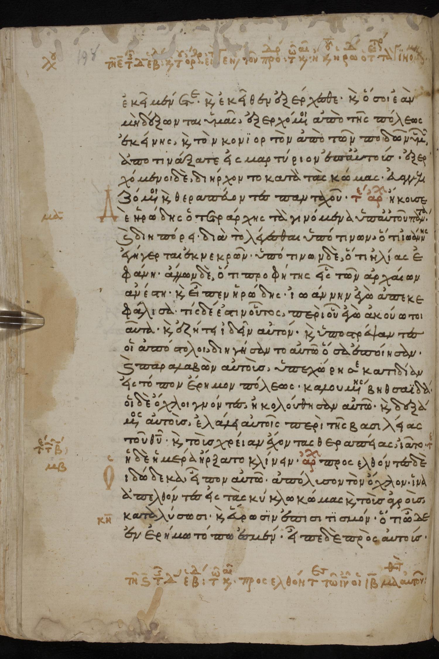 Thirteenth century minuscule of the Gospels, Apostolos, Paul, and Revelation on paper; 412 leaves, 1 column, 24-28 lines per column. Images were taken at the National Library of Greece in Athens.