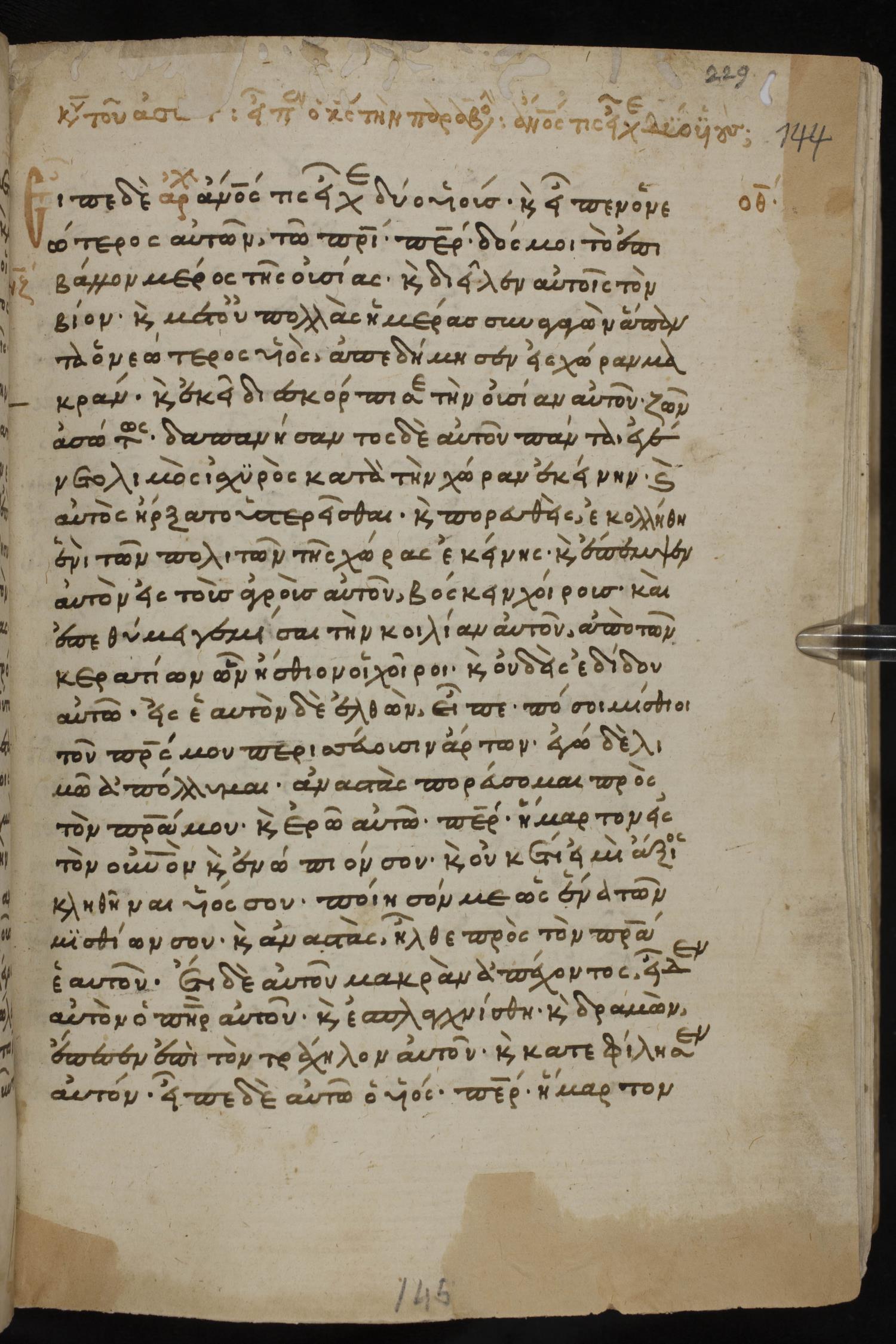 Thirteenth century minuscule of the Gospels, Apostolos, Paul, and Revelation on paper; 412 leaves, 1 column, 24-28 lines per column. Images were taken at the National Library of Greece in Athens.