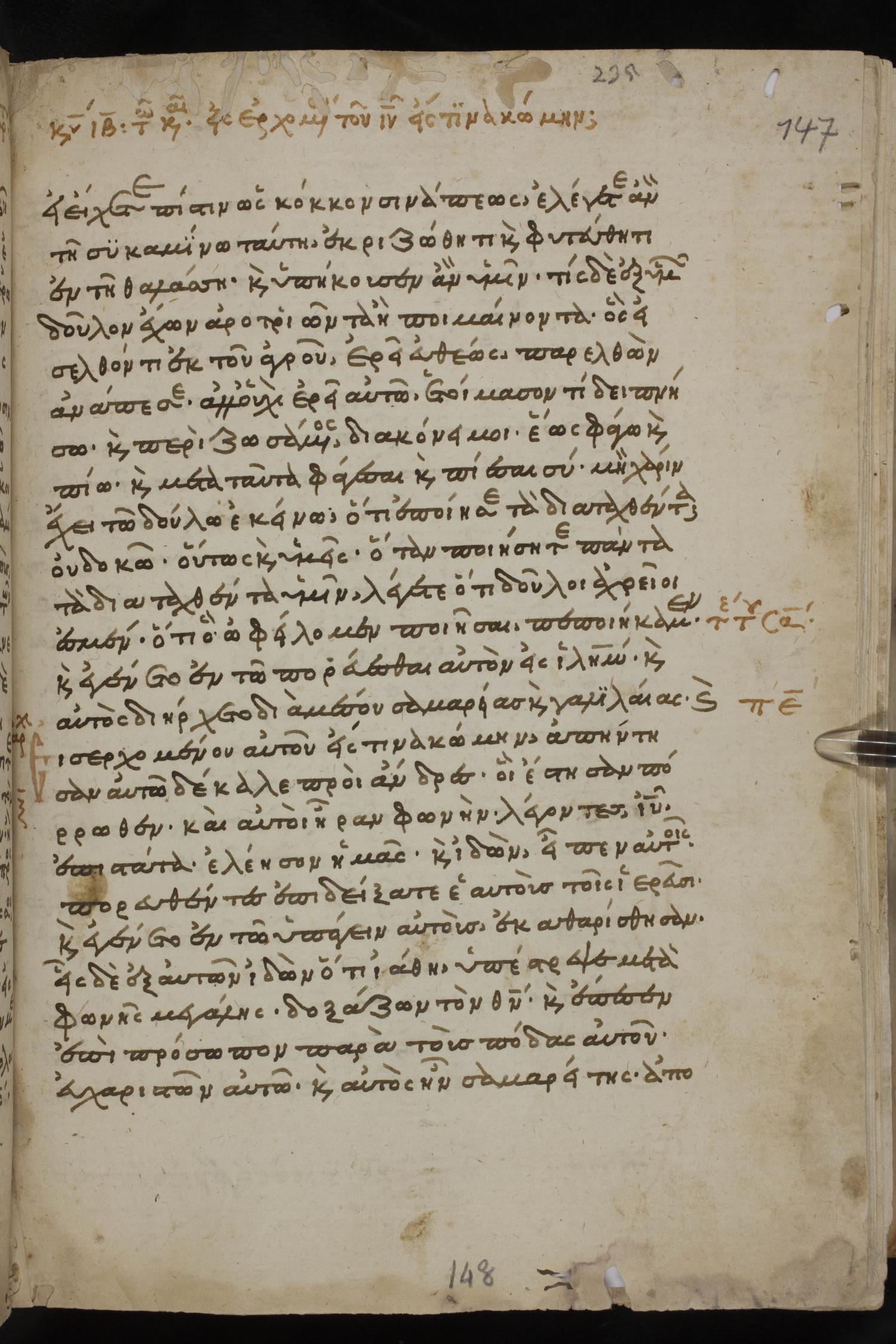 Thirteenth century minuscule of the Gospels, Apostolos, Paul, and Revelation on paper; 412 leaves, 1 column, 24-28 lines per column. Images were taken at the National Library of Greece in Athens.