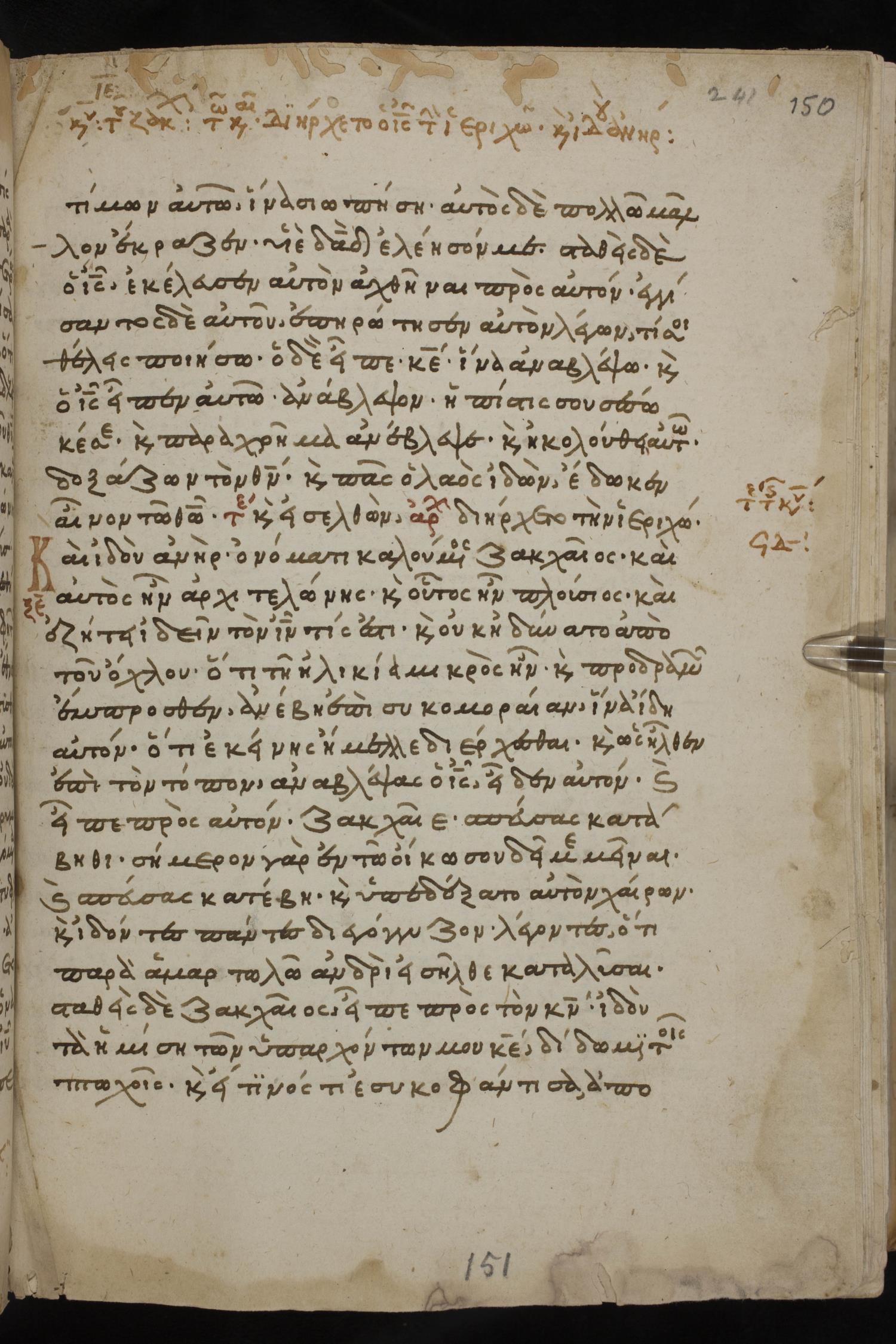 Thirteenth century minuscule of the Gospels, Apostolos, Paul, and Revelation on paper; 412 leaves, 1 column, 24-28 lines per column. Images were taken at the National Library of Greece in Athens.