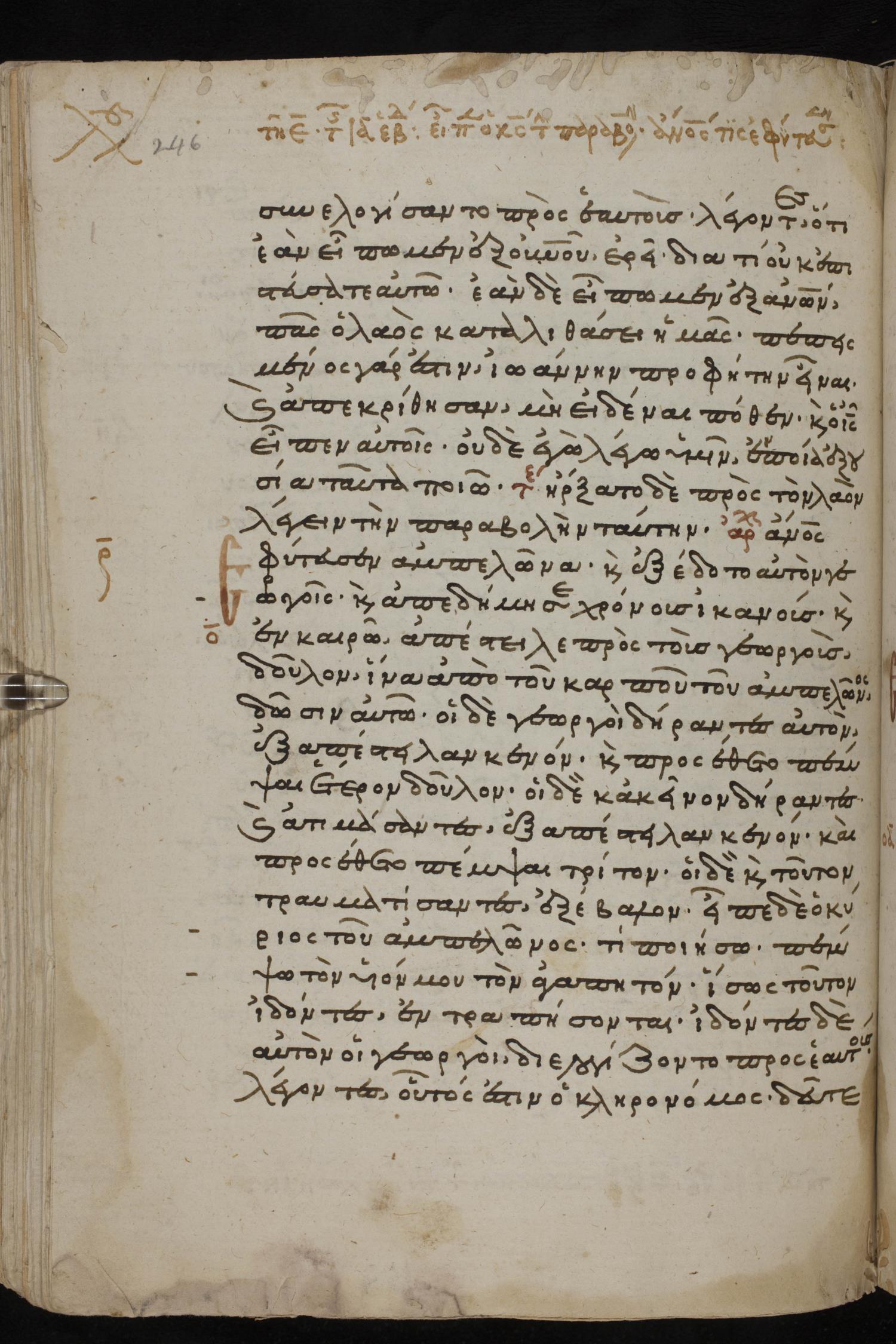 Thirteenth century minuscule of the Gospels, Apostolos, Paul, and Revelation on paper; 412 leaves, 1 column, 24-28 lines per column. Images were taken at the National Library of Greece in Athens.