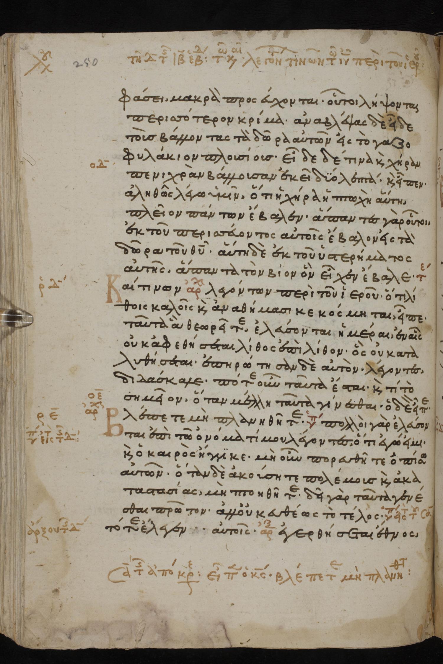 Thirteenth century minuscule of the Gospels, Apostolos, Paul, and Revelation on paper; 412 leaves, 1 column, 24-28 lines per column. Images were taken at the National Library of Greece in Athens.