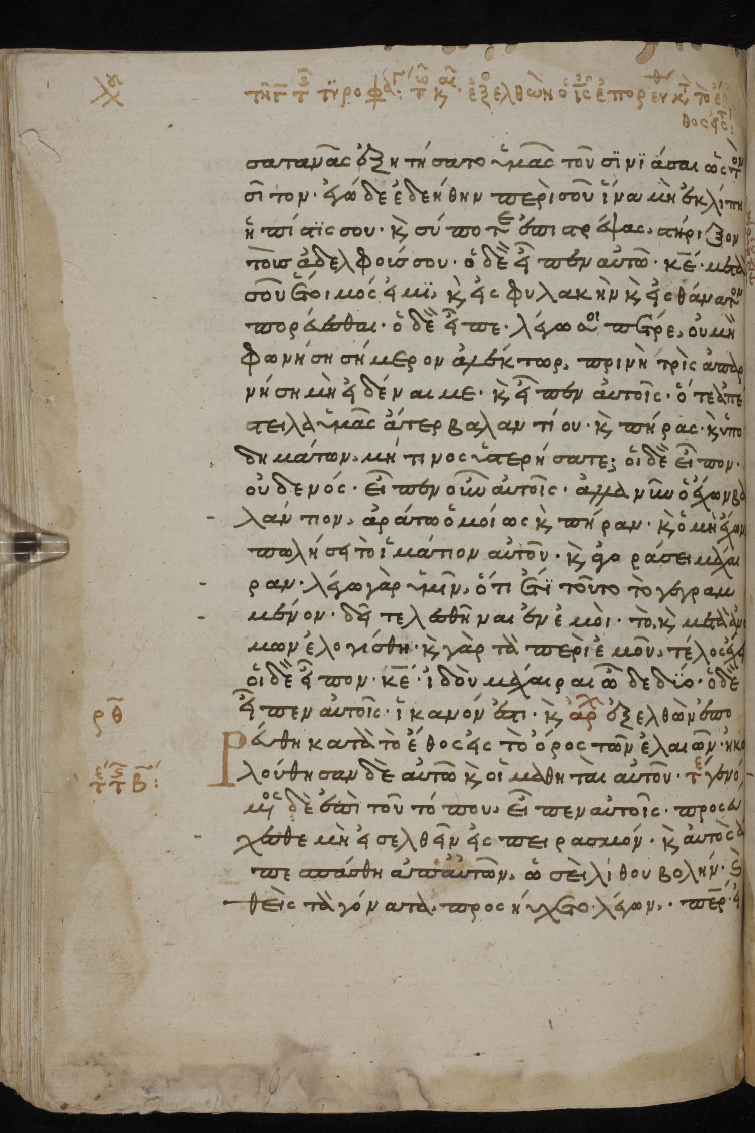 Thirteenth century minuscule of the Gospels, Apostolos, Paul, and Revelation on paper; 412 leaves, 1 column, 24-28 lines per column. Images were taken at the National Library of Greece in Athens.