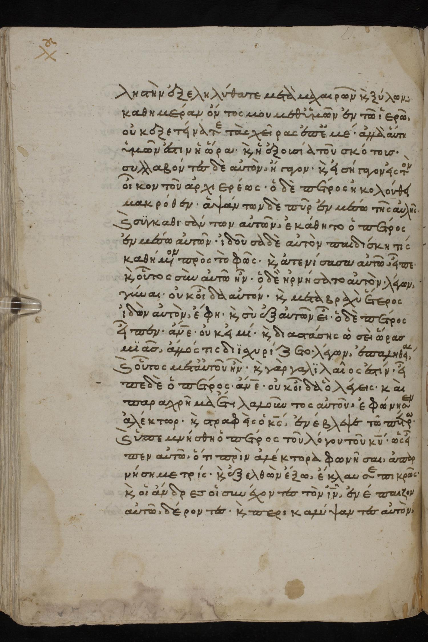 Thirteenth century minuscule of the Gospels, Apostolos, Paul, and Revelation on paper; 412 leaves, 1 column, 24-28 lines per column. Images were taken at the National Library of Greece in Athens.