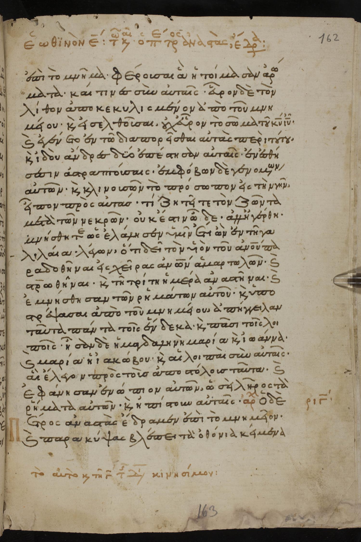 Thirteenth century minuscule of the Gospels, Apostolos, Paul, and Revelation on paper; 412 leaves, 1 column, 24-28 lines per column. Images were taken at the National Library of Greece in Athens.