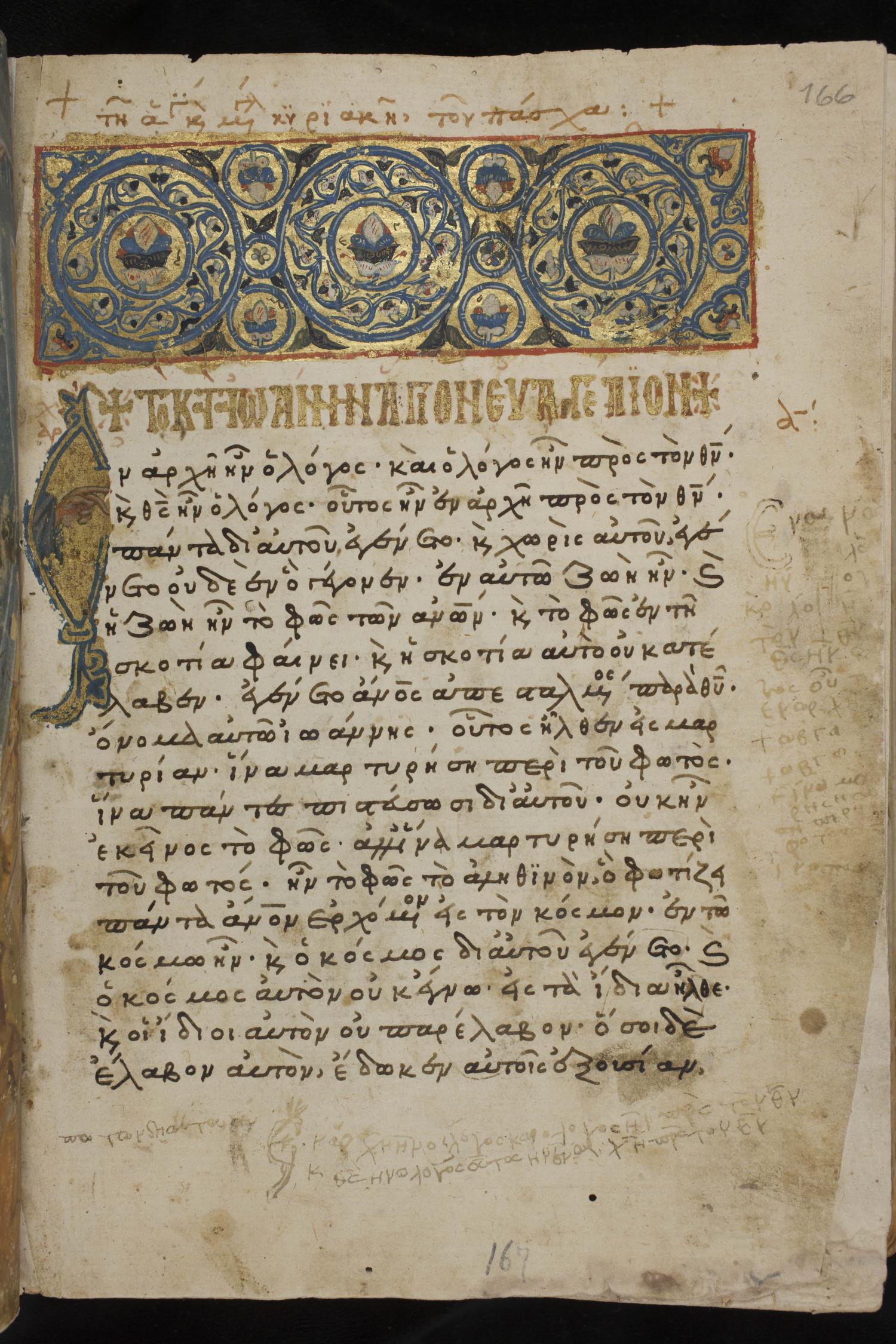 Thirteenth century minuscule of the Gospels, Apostolos, Paul, and Revelation on paper; 412 leaves, 1 column, 24-28 lines per column. Images were taken at the National Library of Greece in Athens.
