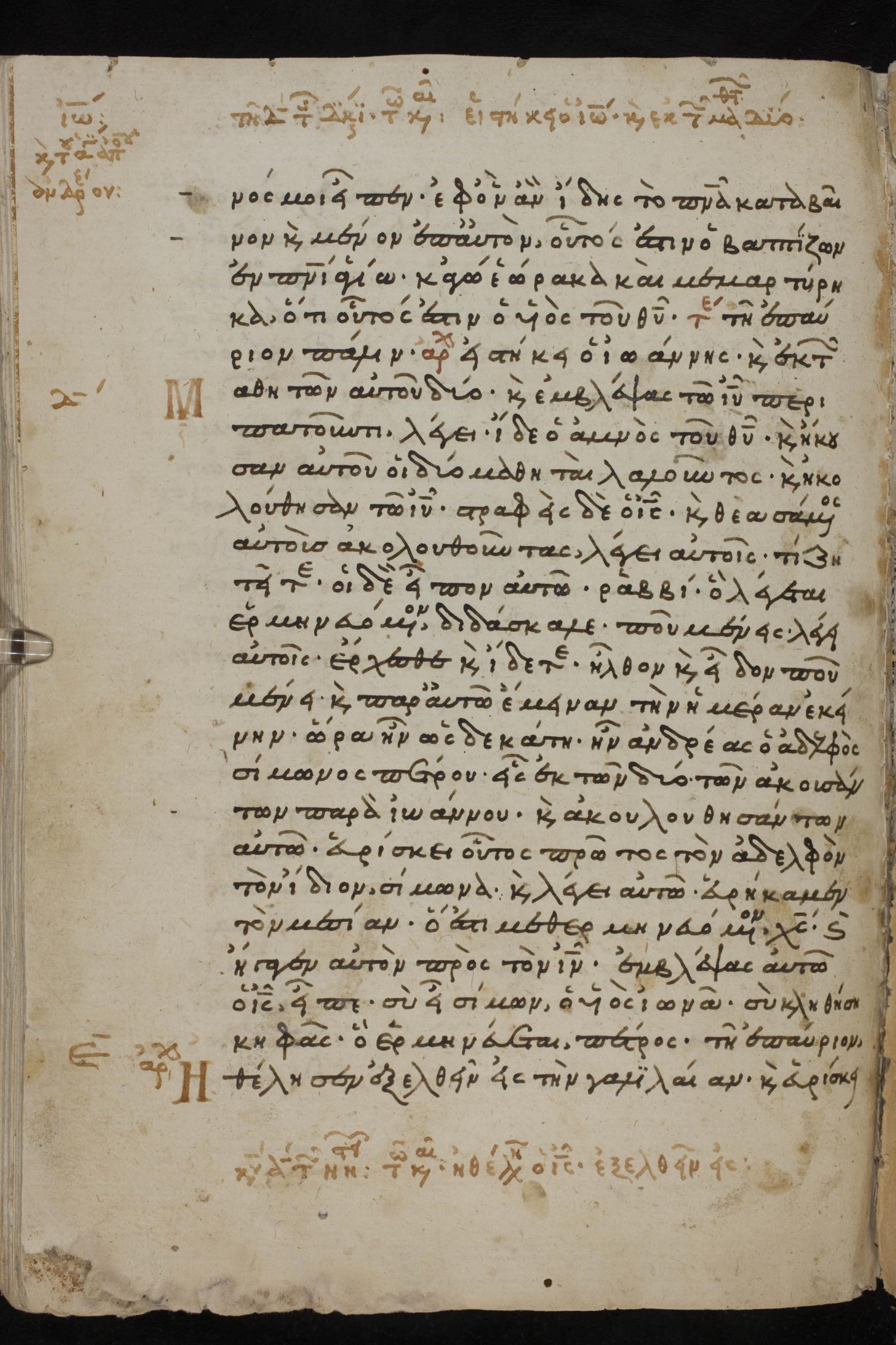 Ἦν Ἀνδρέας ὁ ἀδελφὸς Σίμωνος Πέτρου εἷς ἐκ τῶν δύο τῶν ἀκουσάντων παρὰ Ἰωάνου / Ἰωάννου καὶ ἀκολουθησάντων αὐτῷ·