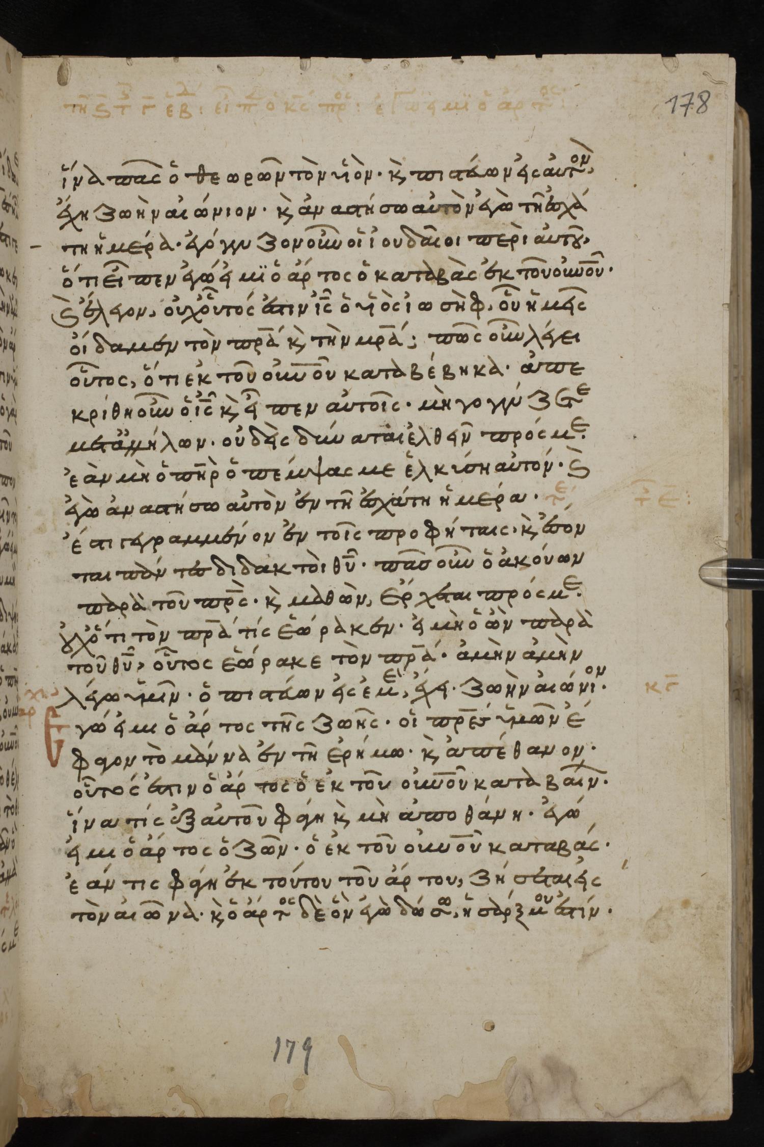Thirteenth century minuscule of the Gospels, Apostolos, Paul, and Revelation on paper; 412 leaves, 1 column, 24-28 lines per column. Images were taken at the National Library of Greece in Athens.
