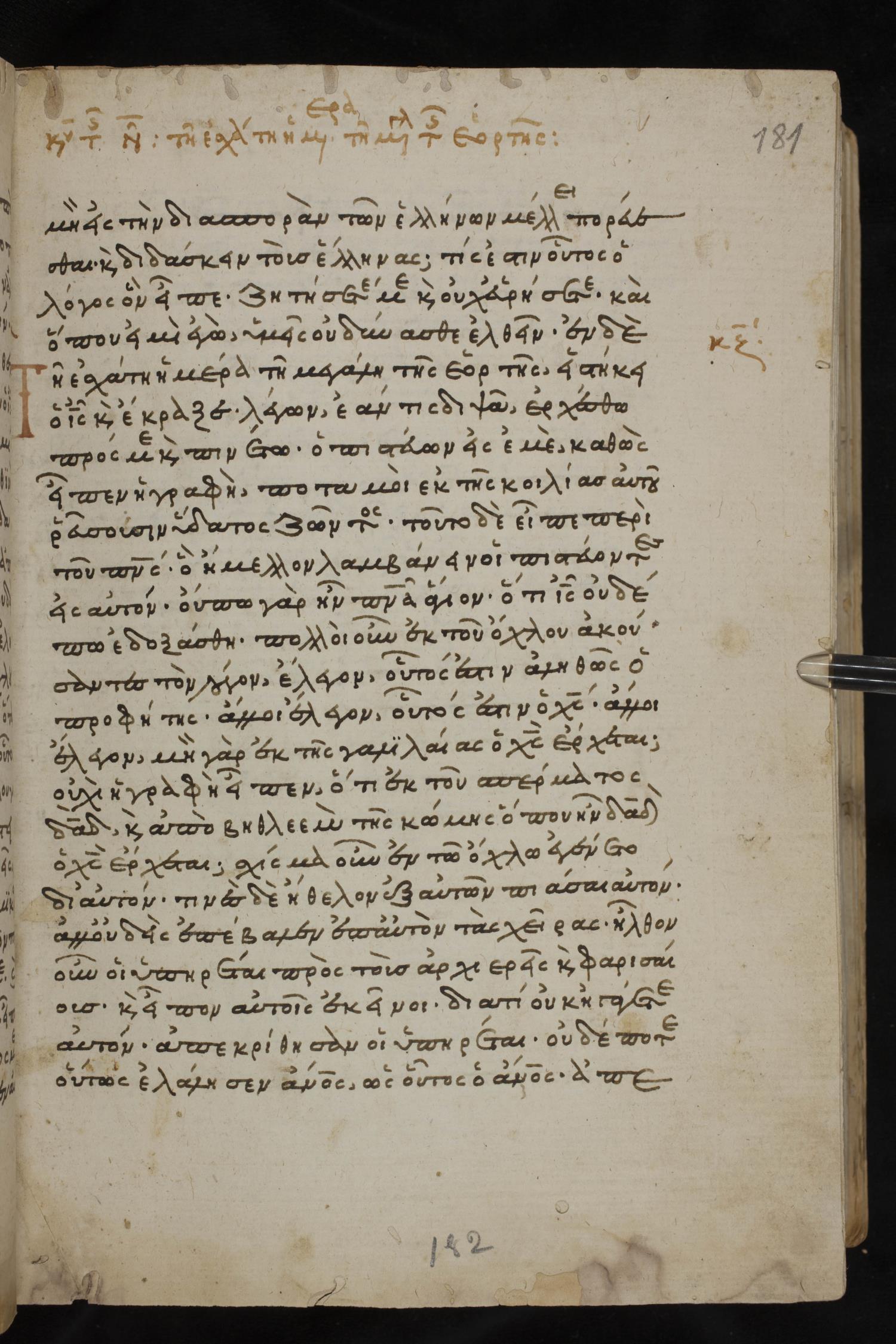 Thirteenth century minuscule of the Gospels, Apostolos, Paul, and Revelation on paper; 412 leaves, 1 column, 24-28 lines per column. Images were taken at the National Library of Greece in Athens.