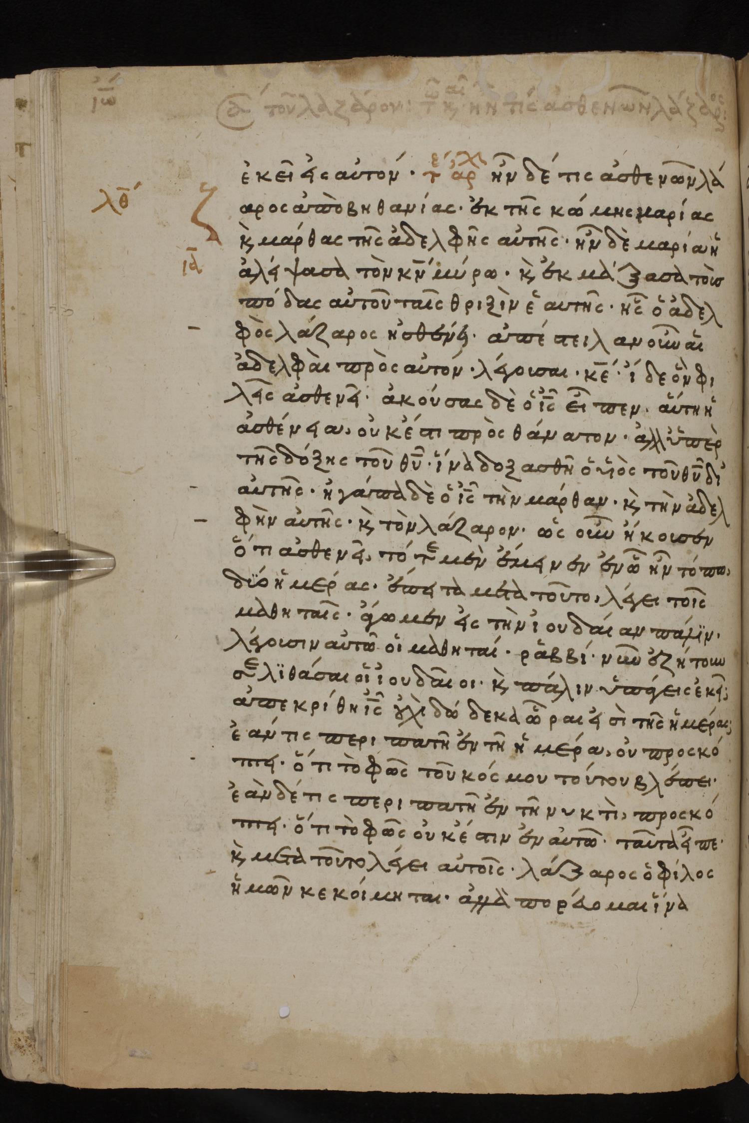 Ἦν δέ τις ἀσθενῶν, Λάζαρος ἀπὸ Βηθανίας ἐκ τῆς κώμης Μαρίας καὶ Μάρθας τῆς ἀδελφῆς αὐτῆς.