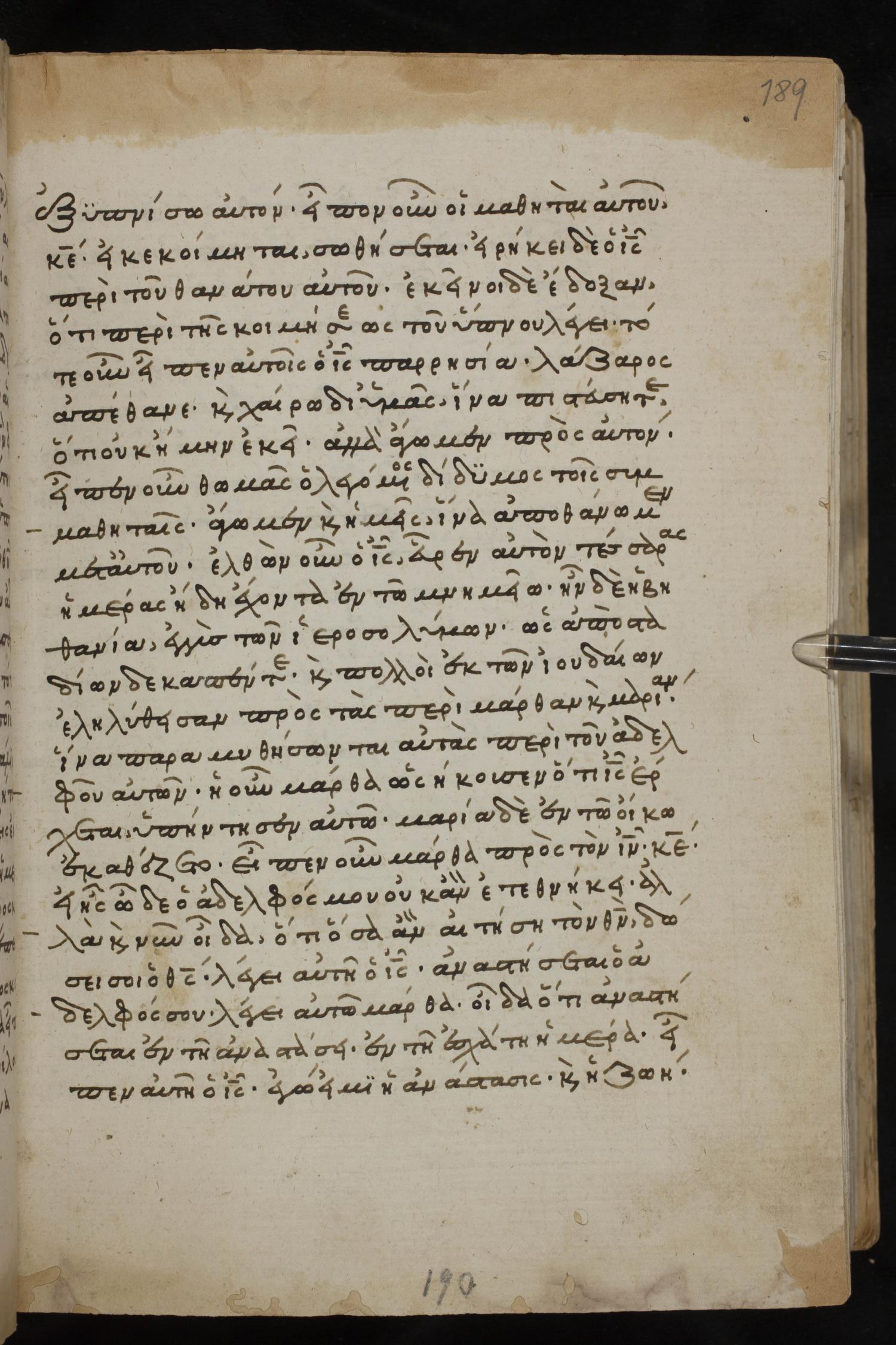 Thirteenth century minuscule of the Gospels, Apostolos, Paul, and Revelation on paper; 412 leaves, 1 column, 24-28 lines per column. Images were taken at the National Library of Greece in Athens.