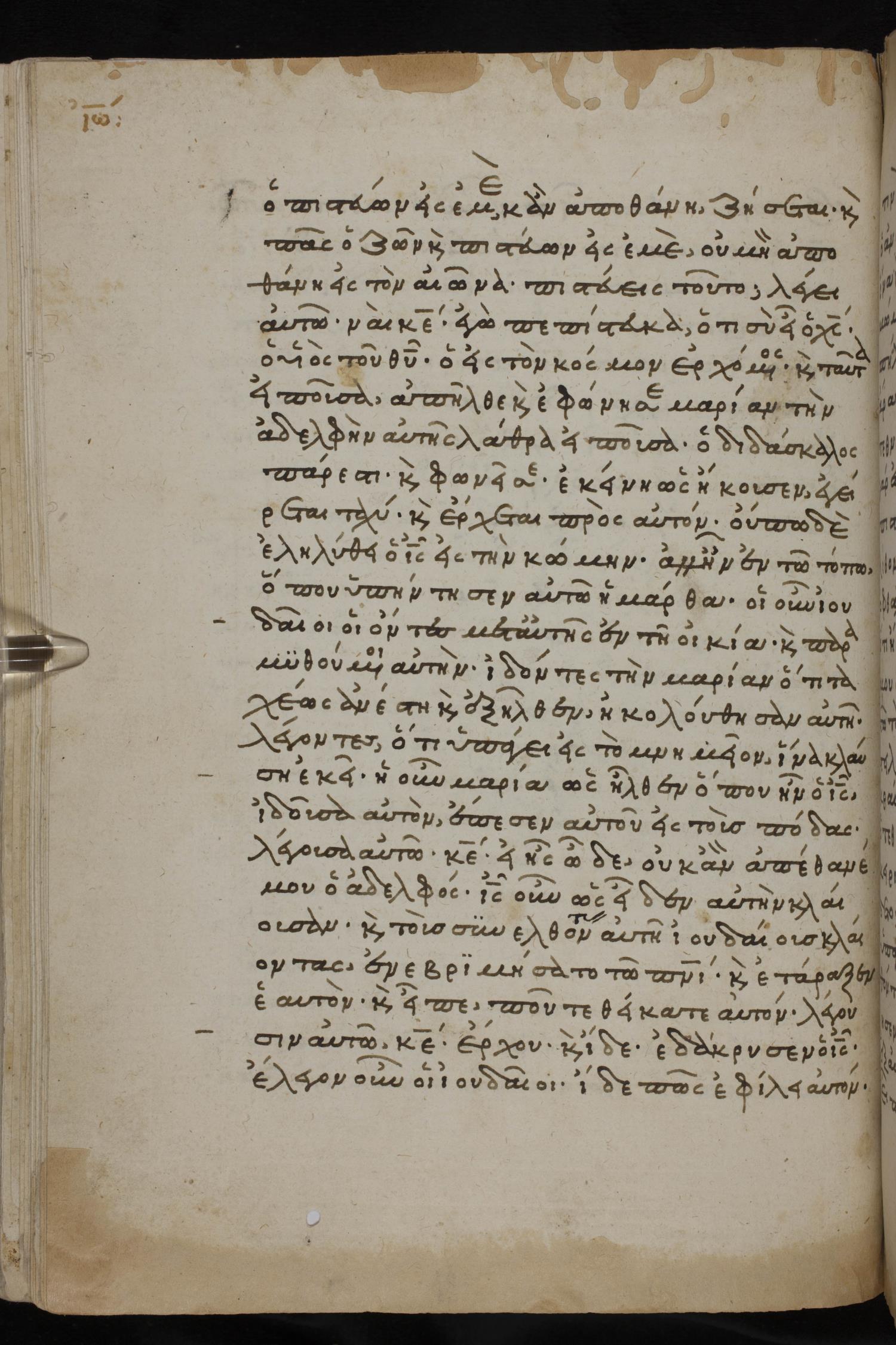 καὶ τοῦτο εἰποῦσα ἀπῆλθεν καὶ ἐφώνησεν Μαριὰμ τὴν ἀδελφὴν αὐτῆς λάθρᾳ εἴπασα / εἰποῦσα Ὁ διδάσκαλος πάρεστιν καὶ φωνεῖ σε.