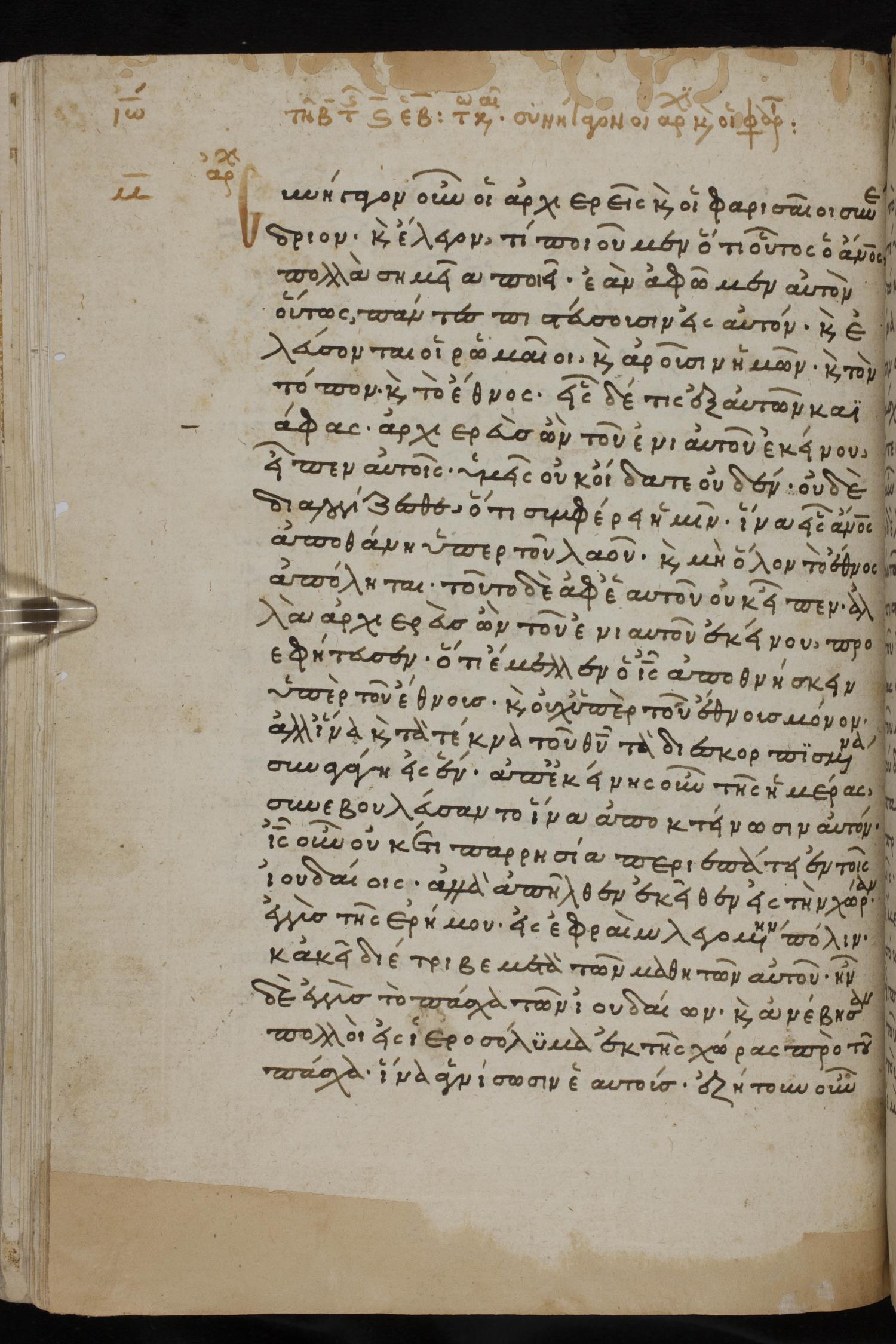 Thirteenth century minuscule of the Gospels, Apostolos, Paul, and Revelation on paper; 412 leaves, 1 column, 24-28 lines per column. Images were taken at the National Library of Greece in Athens.