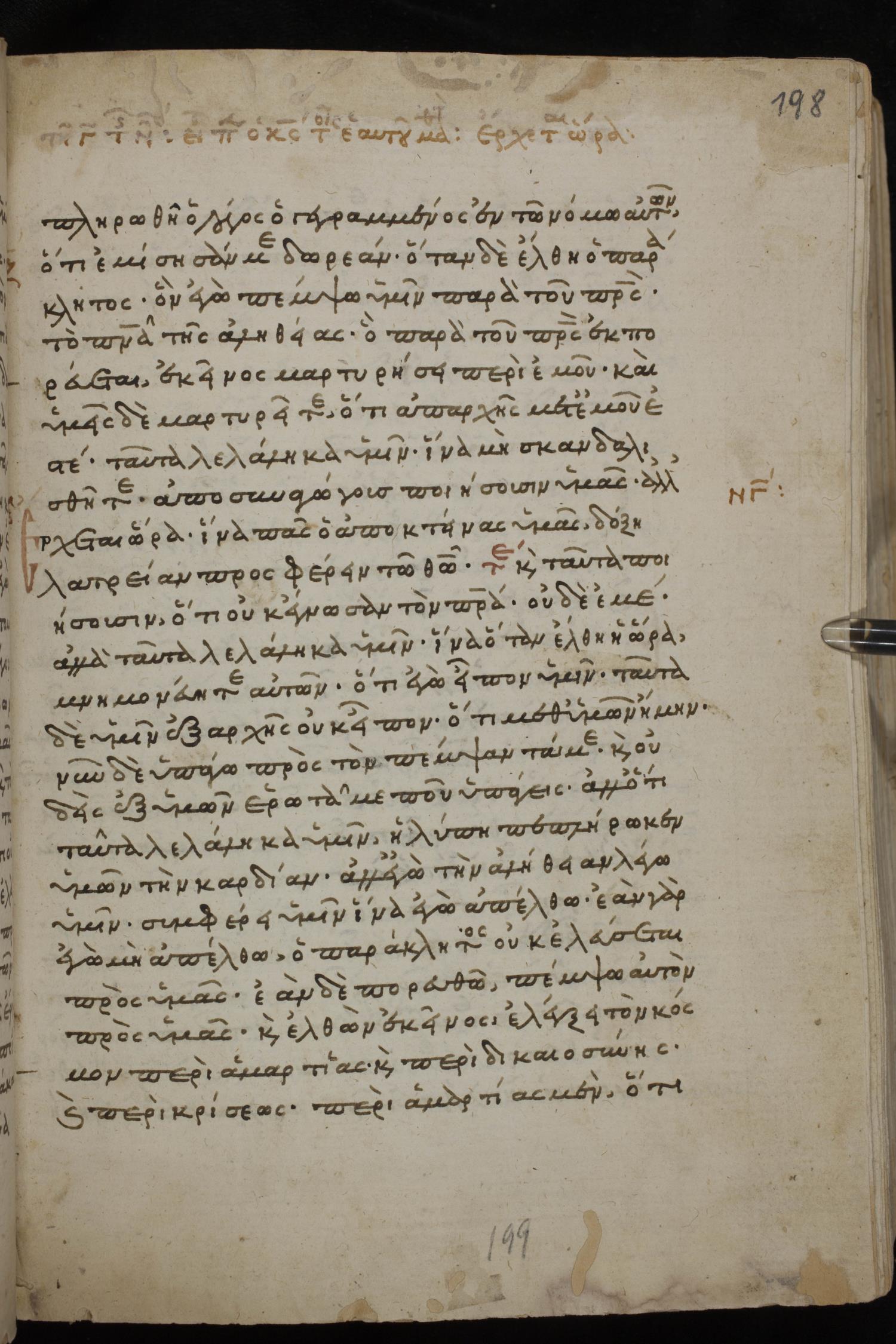 Thirteenth century minuscule of the Gospels, Apostolos, Paul, and Revelation on paper; 412 leaves, 1 column, 24-28 lines per column. Images were taken at the National Library of Greece in Athens.