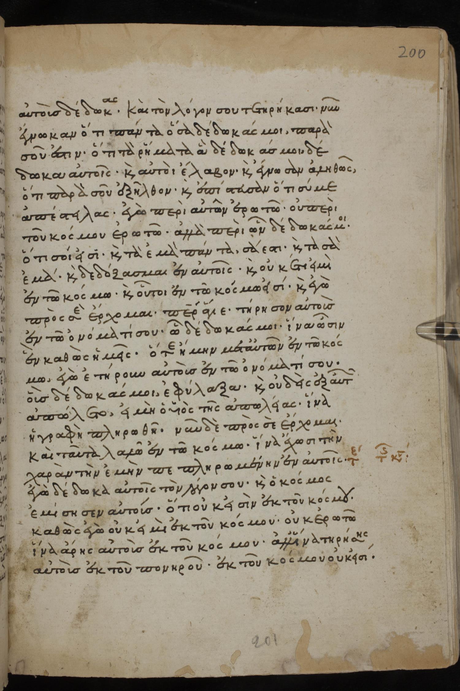 Thirteenth century minuscule of the Gospels, Apostolos, Paul, and Revelation on paper; 412 leaves, 1 column, 24-28 lines per column. Images were taken at the National Library of Greece in Athens.