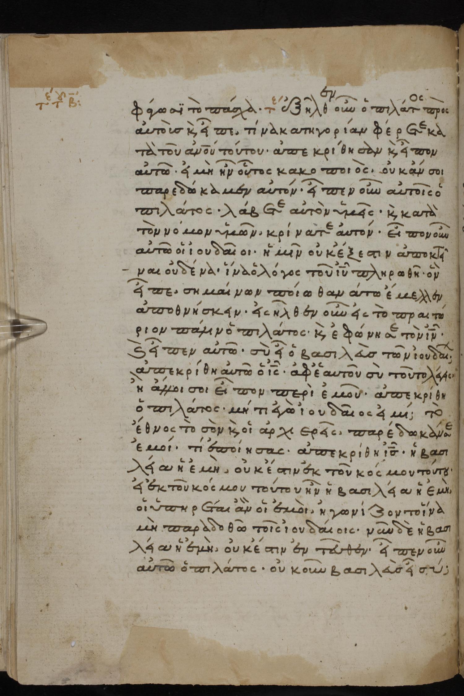 ἀπεκρίθη ὁ Πειλᾶτος / Πιλᾶτος Μήτι ἐγὼ Ἰουδαῖός εἰμι; τὸ ἔθνος τὸ σὸν καὶ οἱ ἀρχιερεῖς παρέδωκάν σε ἐμοί· τί ἐποίησας;