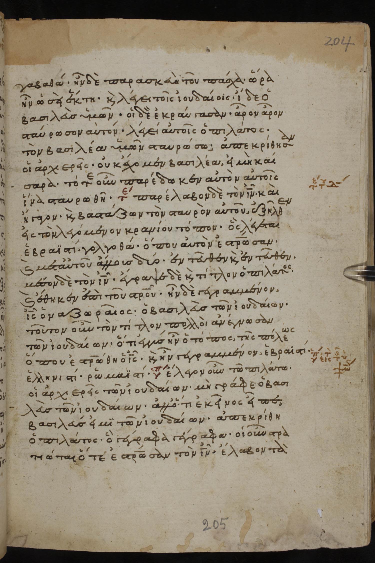 Thirteenth century minuscule of the Gospels, Apostolos, Paul, and Revelation on paper; 412 leaves, 1 column, 24-28 lines per column. Images were taken at the National Library of Greece in Athens.