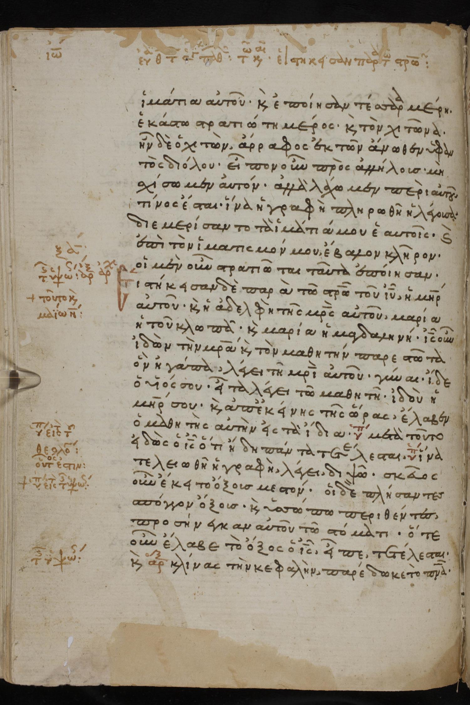 Thirteenth century minuscule of the Gospels, Apostolos, Paul, and Revelation on paper; 412 leaves, 1 column, 24-28 lines per column. Images were taken at the National Library of Greece in Athens.