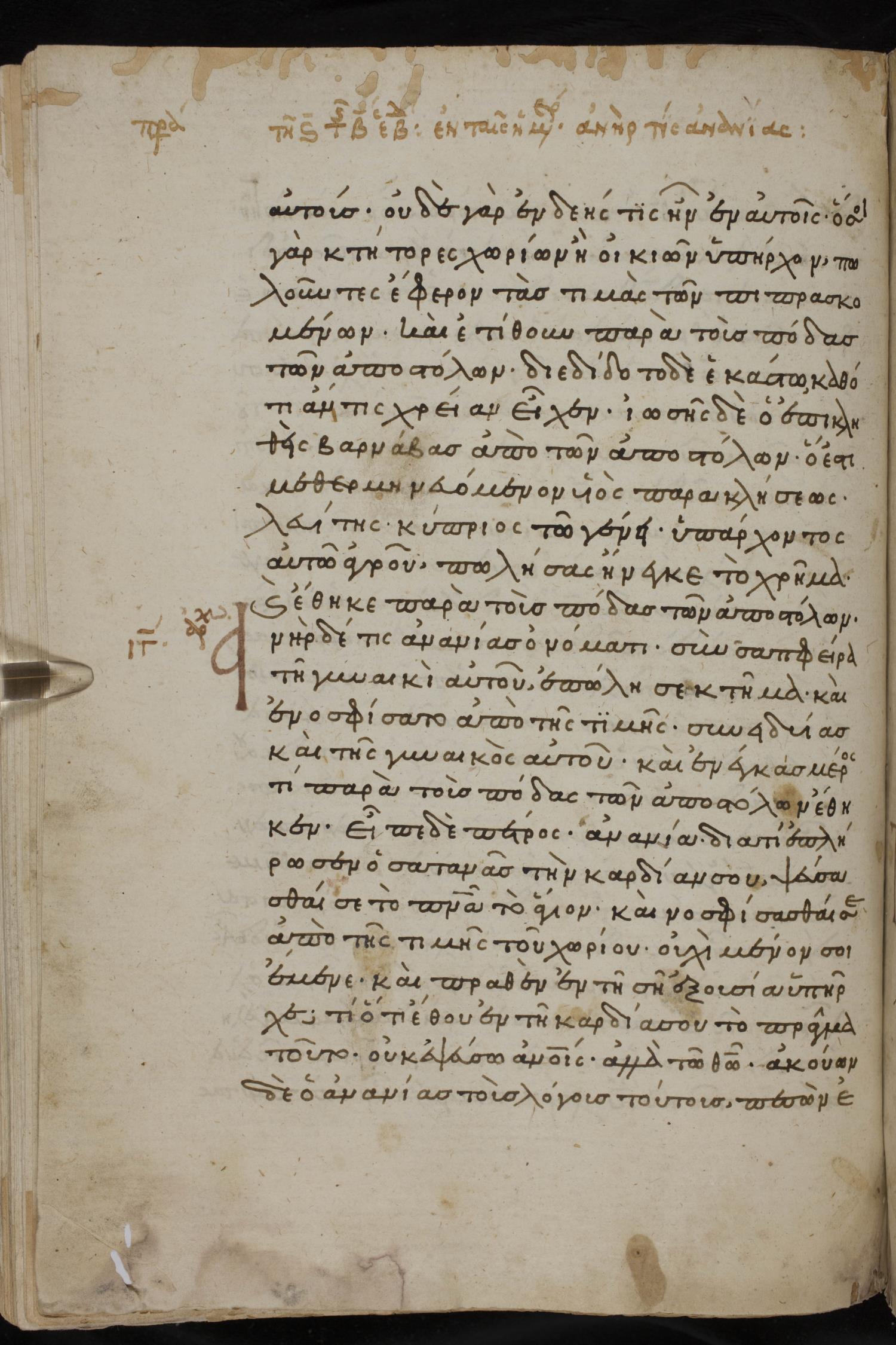 Thirteenth century minuscule of the Gospels, Apostolos, Paul, and Revelation on paper; 412 leaves, 1 column, 24-28 lines per column. Images were taken at the National Library of Greece in Athens.