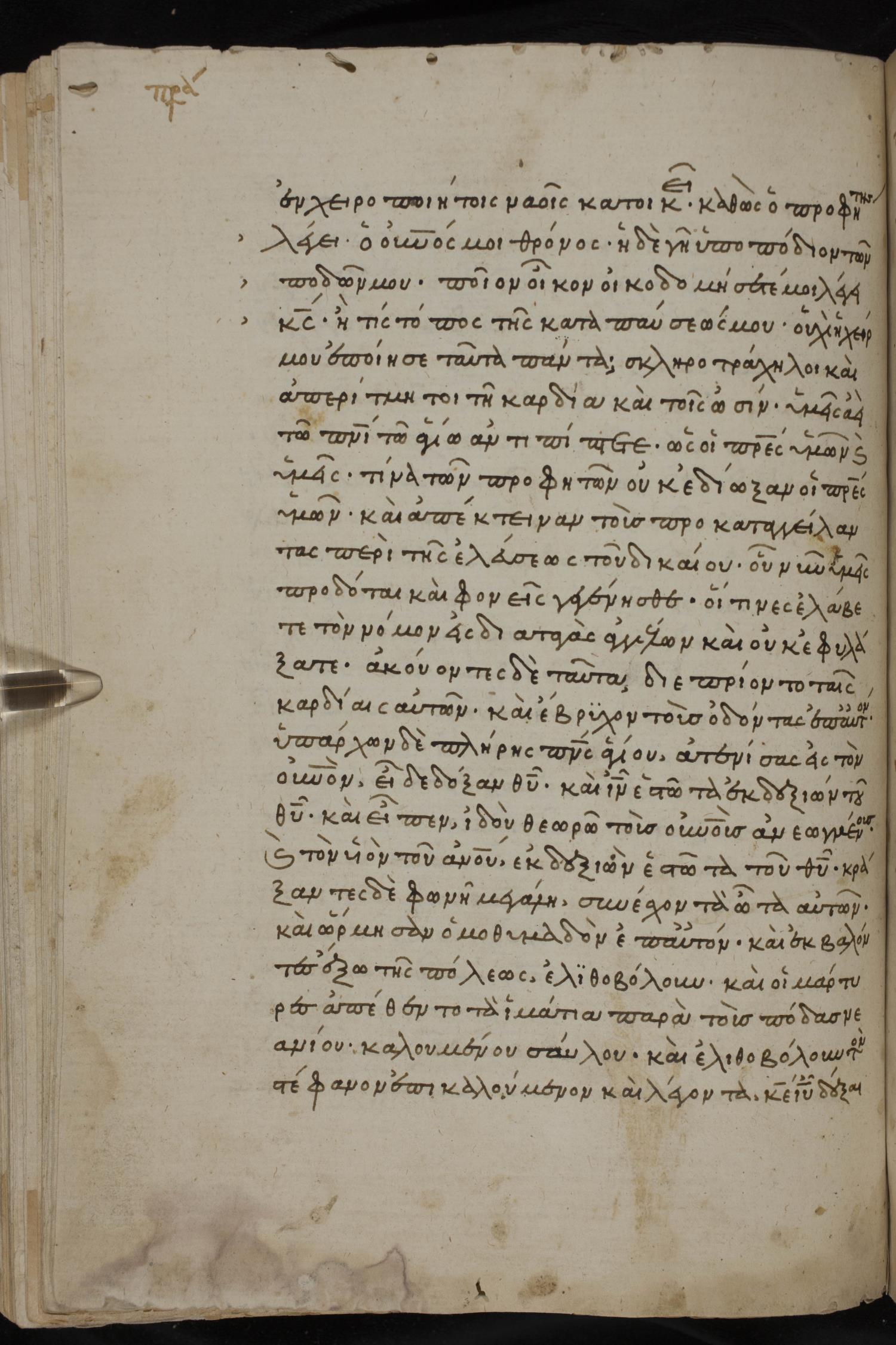Thirteenth century minuscule of the Gospels, Apostolos, Paul, and Revelation on paper; 412 leaves, 1 column, 24-28 lines per column. Images were taken at the National Library of Greece in Athens.