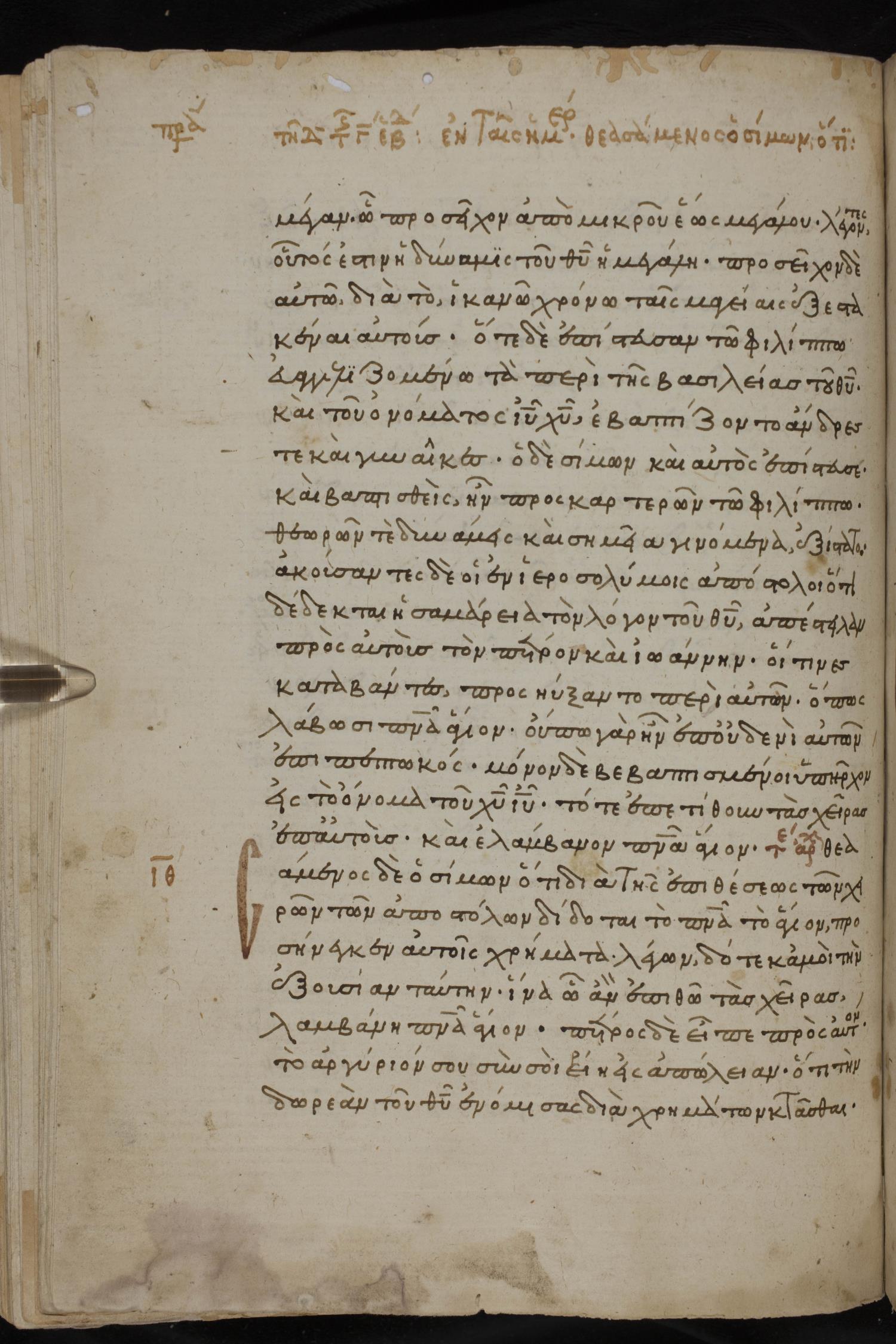 Thirteenth century minuscule of the Gospels, Apostolos, Paul, and Revelation on paper; 412 leaves, 1 column, 24-28 lines per column. Images were taken at the National Library of Greece in Athens.