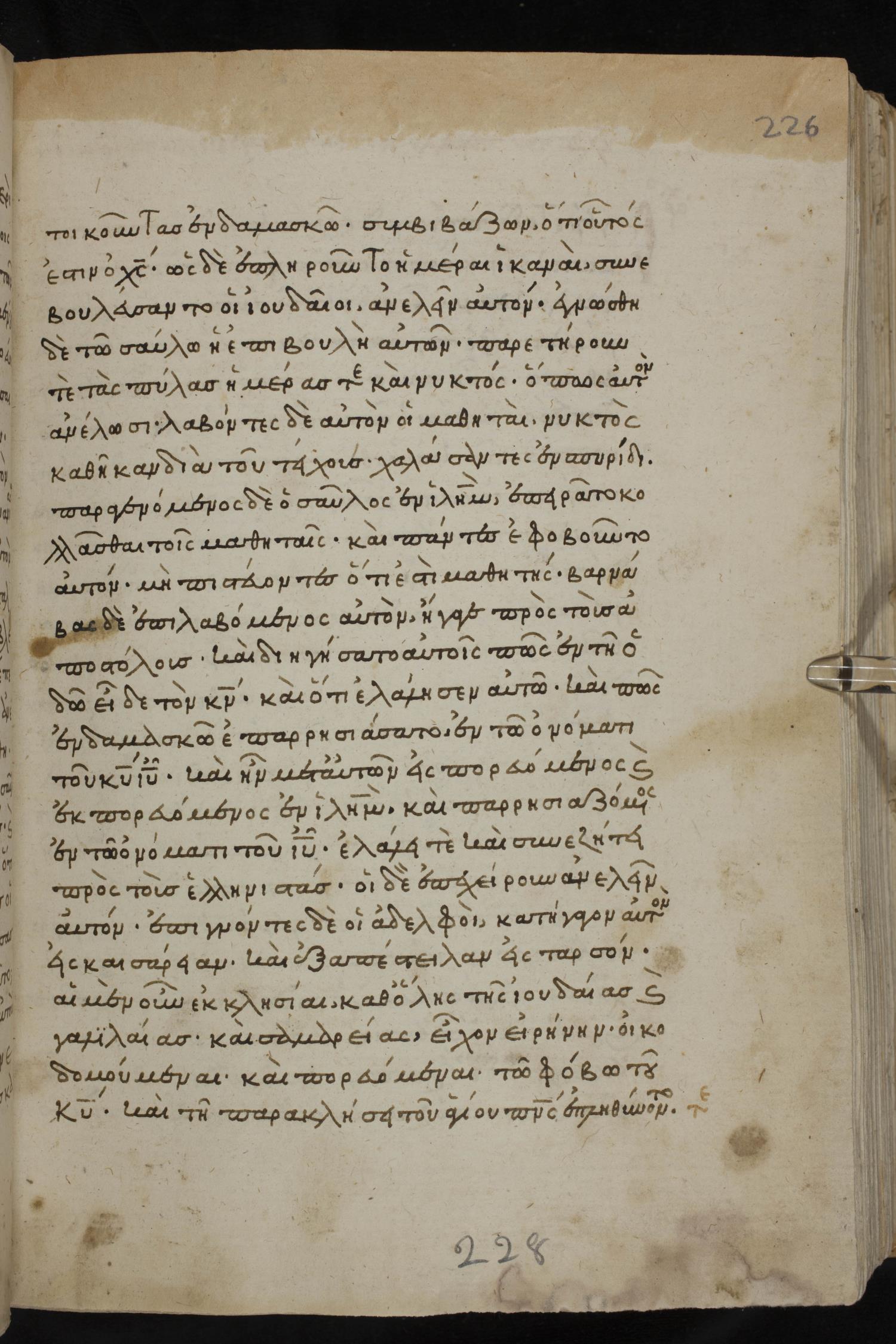 Thirteenth century minuscule of the Gospels, Apostolos, Paul, and Revelation on paper; 412 leaves, 1 column, 24-28 lines per column. Images were taken at the National Library of Greece in Athens.