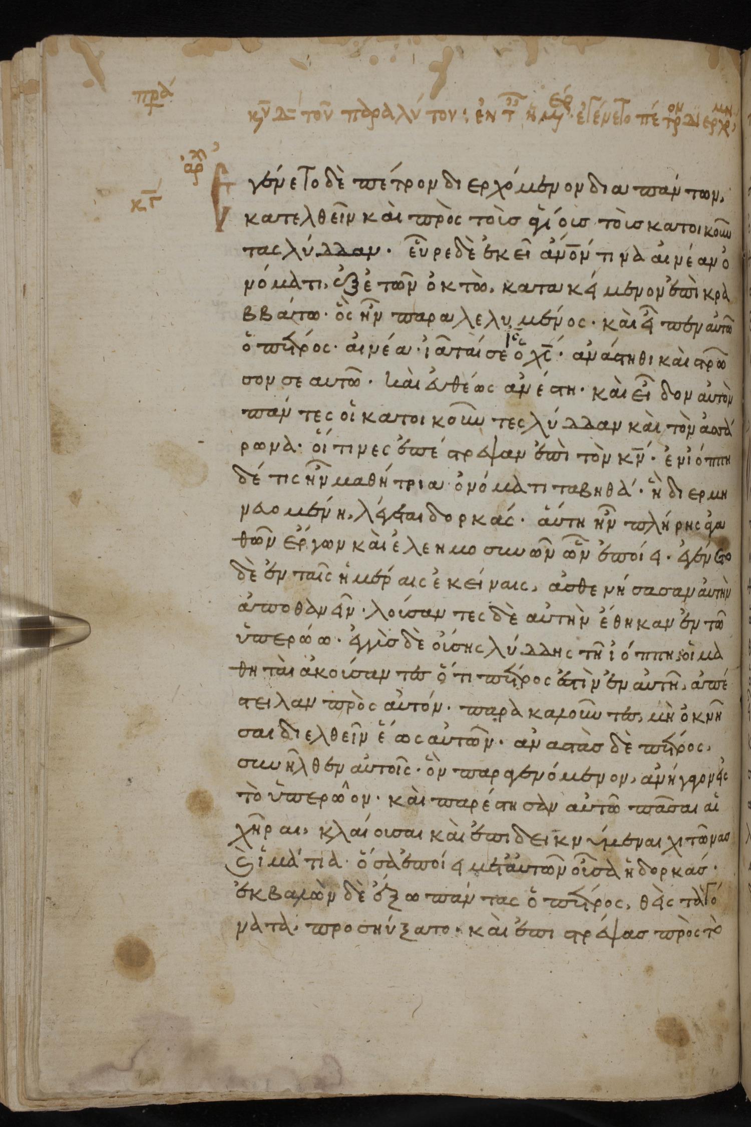 Thirteenth century minuscule of the Gospels, Apostolos, Paul, and Revelation on paper; 412 leaves, 1 column, 24-28 lines per column. Images were taken at the National Library of Greece in Athens.