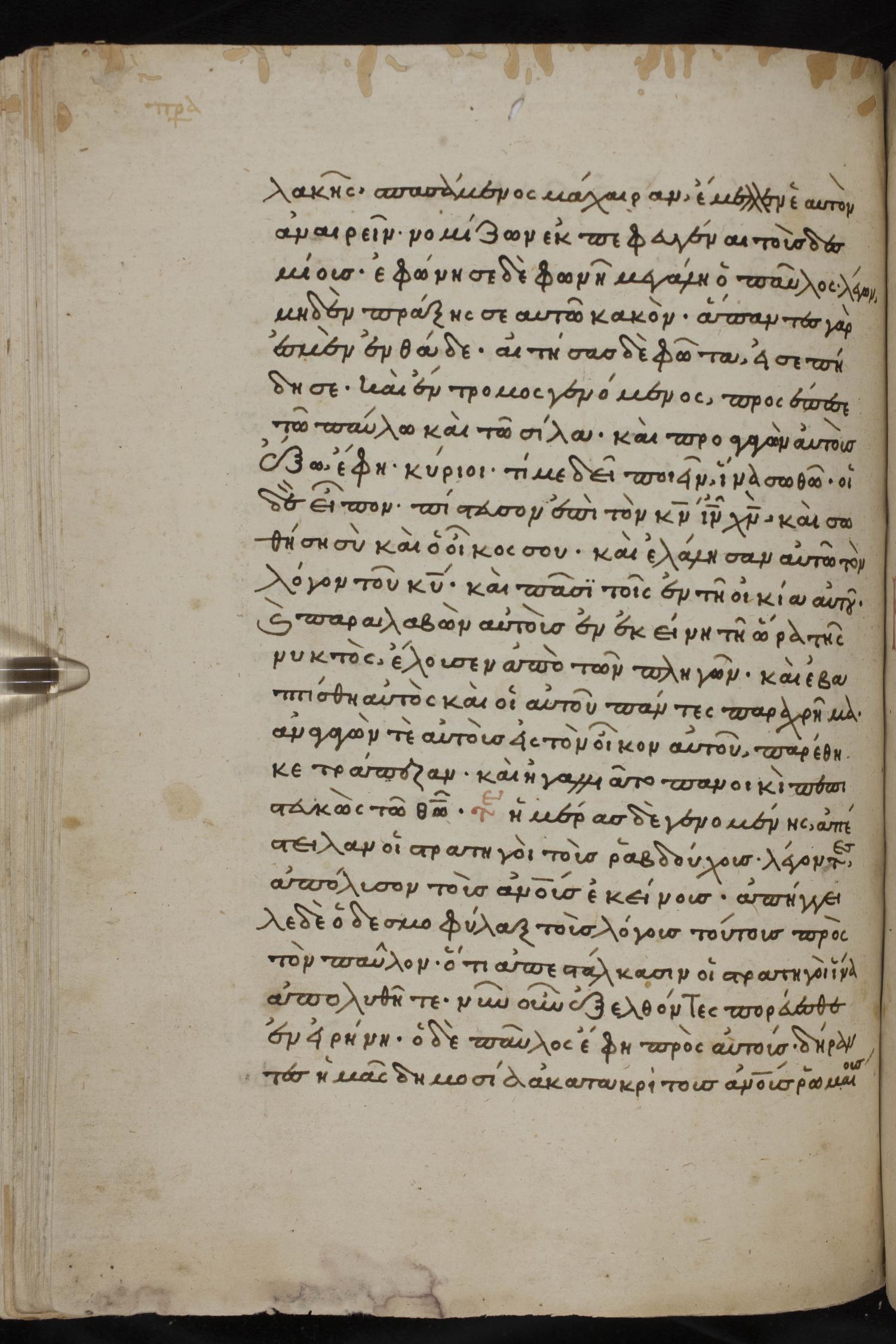 Thirteenth century minuscule of the Gospels, Apostolos, Paul, and Revelation on paper; 412 leaves, 1 column, 24-28 lines per column. Images were taken at the National Library of Greece in Athens.