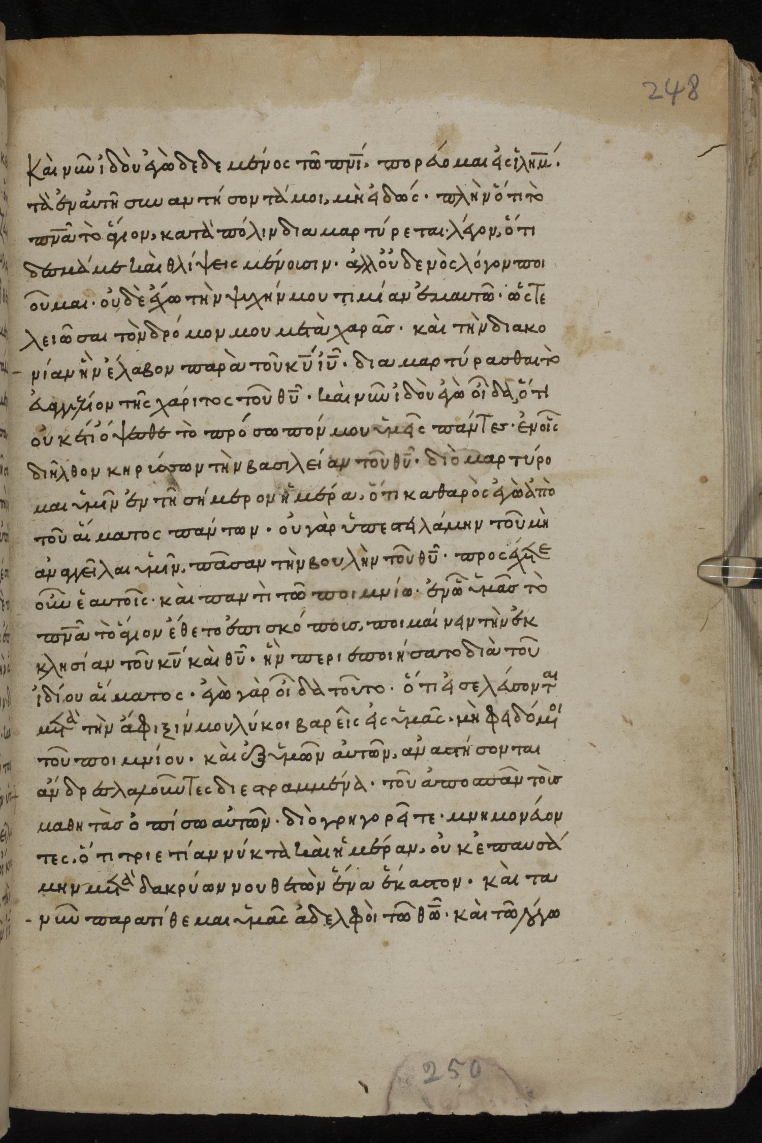Thirteenth century minuscule of the Gospels, Apostolos, Paul, and Revelation on paper; 412 leaves, 1 column, 24-28 lines per column. Images were taken at the National Library of Greece in Athens.