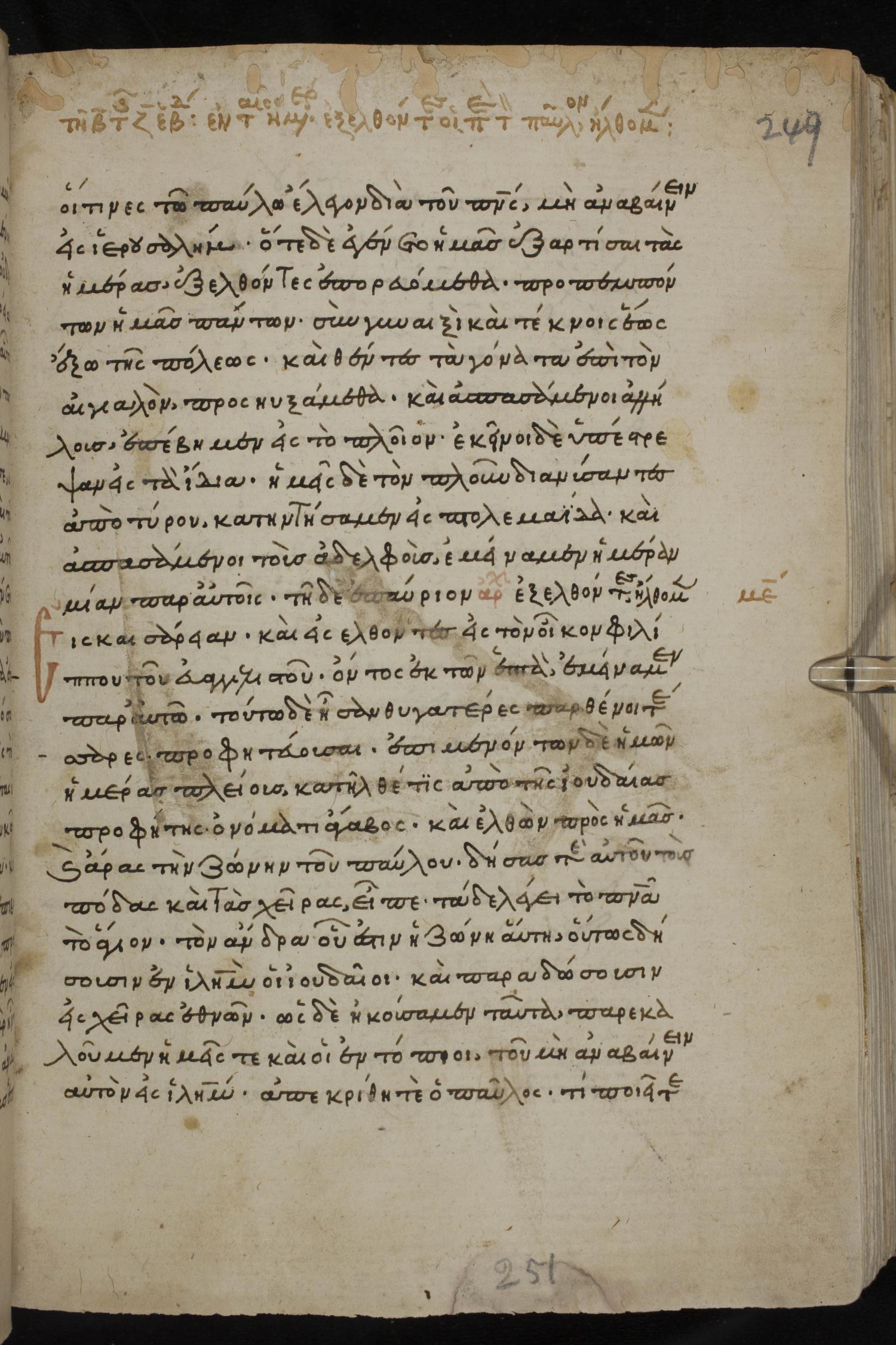 Thirteenth century minuscule of the Gospels, Apostolos, Paul, and Revelation on paper; 412 leaves, 1 column, 24-28 lines per column. Images were taken at the National Library of Greece in Athens.