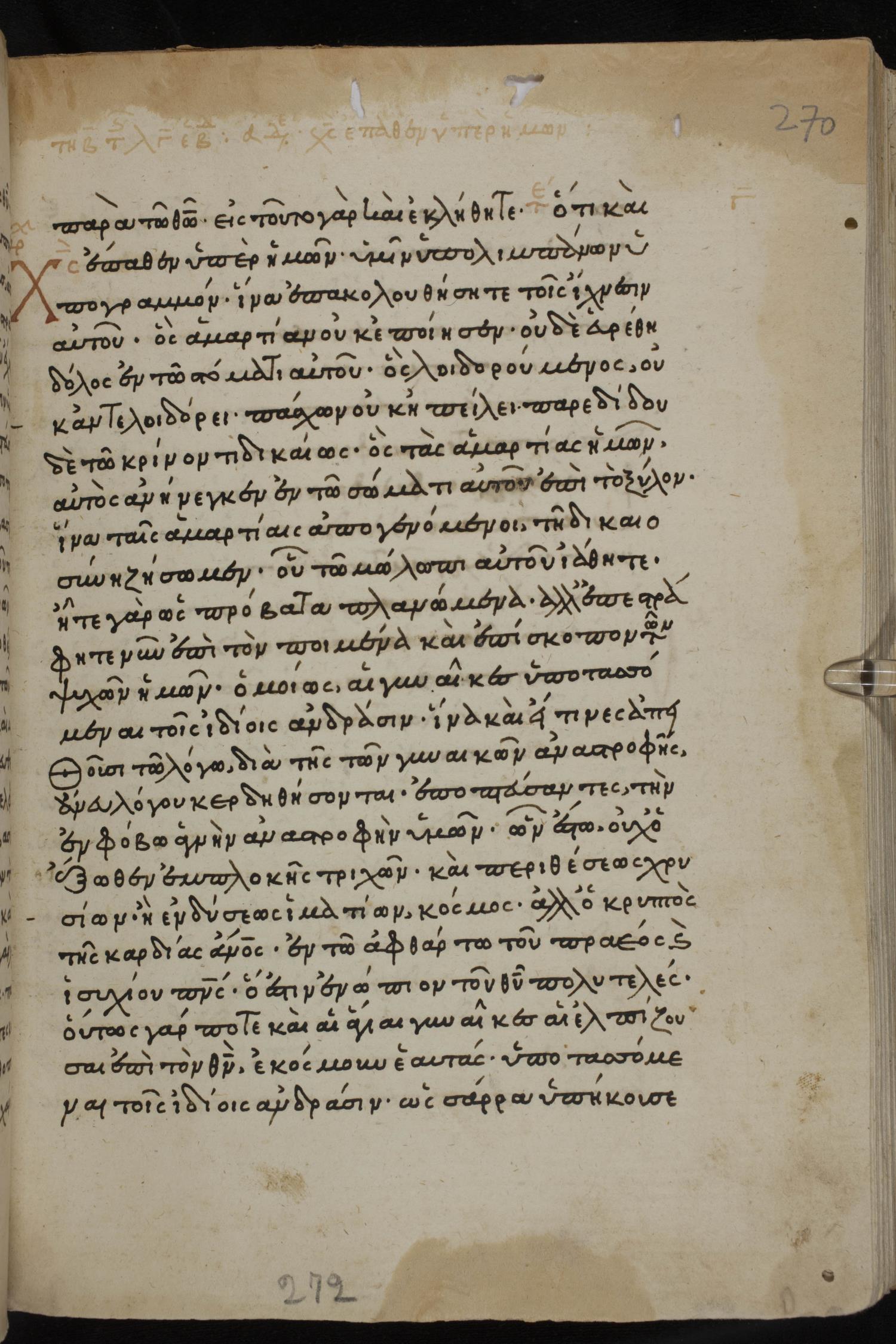 Thirteenth century minuscule of the Gospels, Apostolos, Paul, and Revelation on paper; 412 leaves, 1 column, 24-28 lines per column. Images were taken at the National Library of Greece in Athens.
