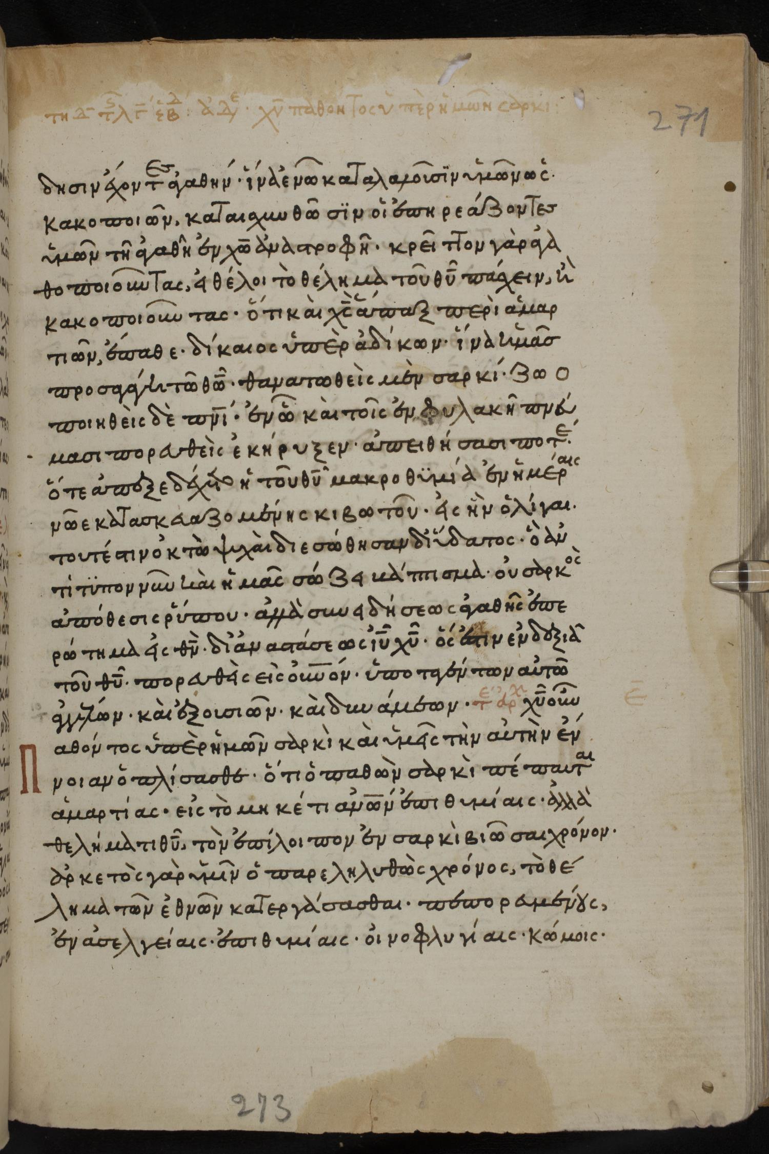 Χριστοῦ οὖν παθόντος σαρκὶ καὶ ὑμεῖς τὴν αὐτὴν ἔννοιαν ὁπλίσασθε, ὅτι ὁ παθὼν σαρκὶ πέπαυται ἁμαρτίαις / ἁμαρτίας,
