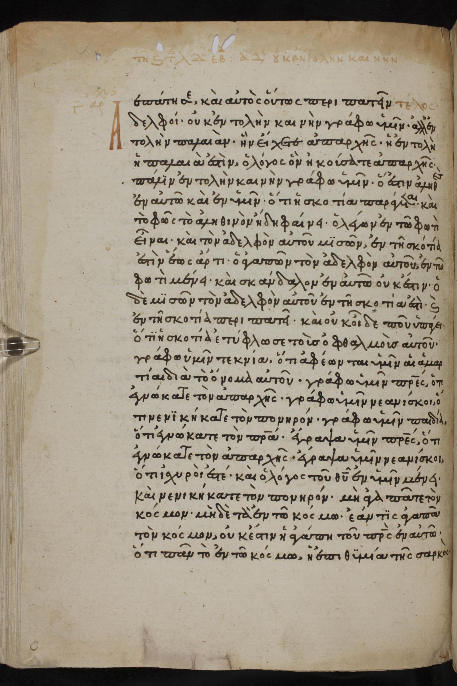 Thirteenth century minuscule of the Gospels, Apostolos, Paul, and Revelation on paper; 412 leaves, 1 column, 24-28 lines per column. Images were taken at the National Library of Greece in Athens.