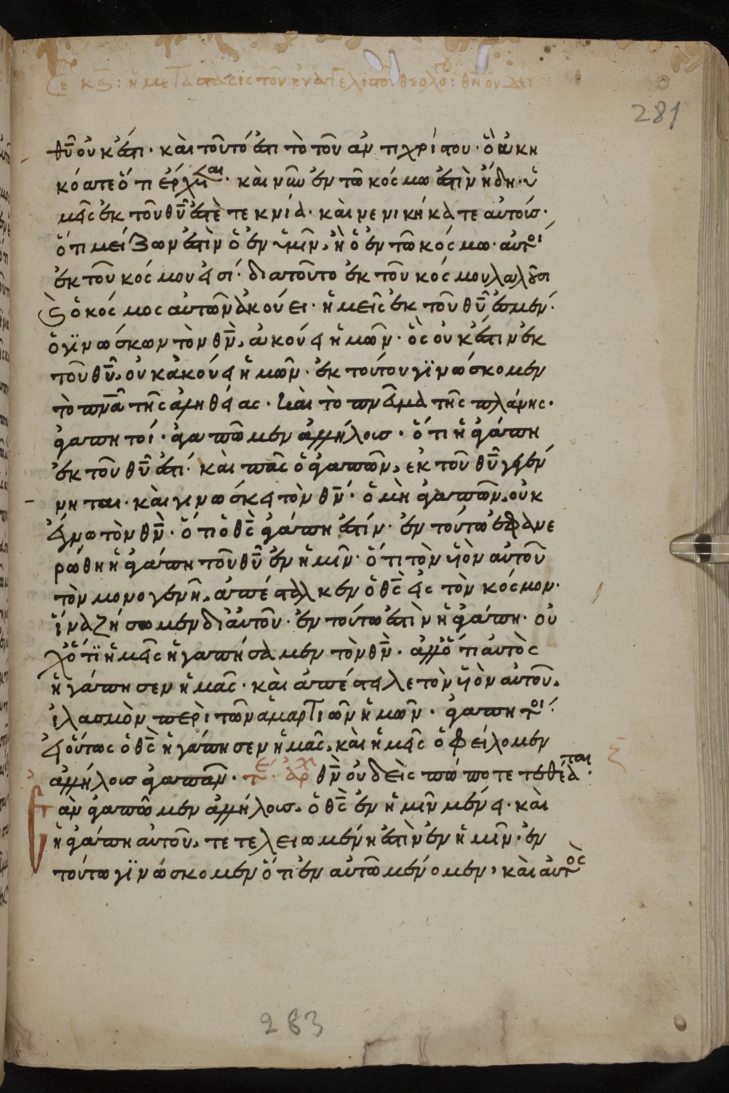 Thirteenth century minuscule of the Gospels, Apostolos, Paul, and Revelation on paper; 412 leaves, 1 column, 24-28 lines per column. Images were taken at the National Library of Greece in Athens.
