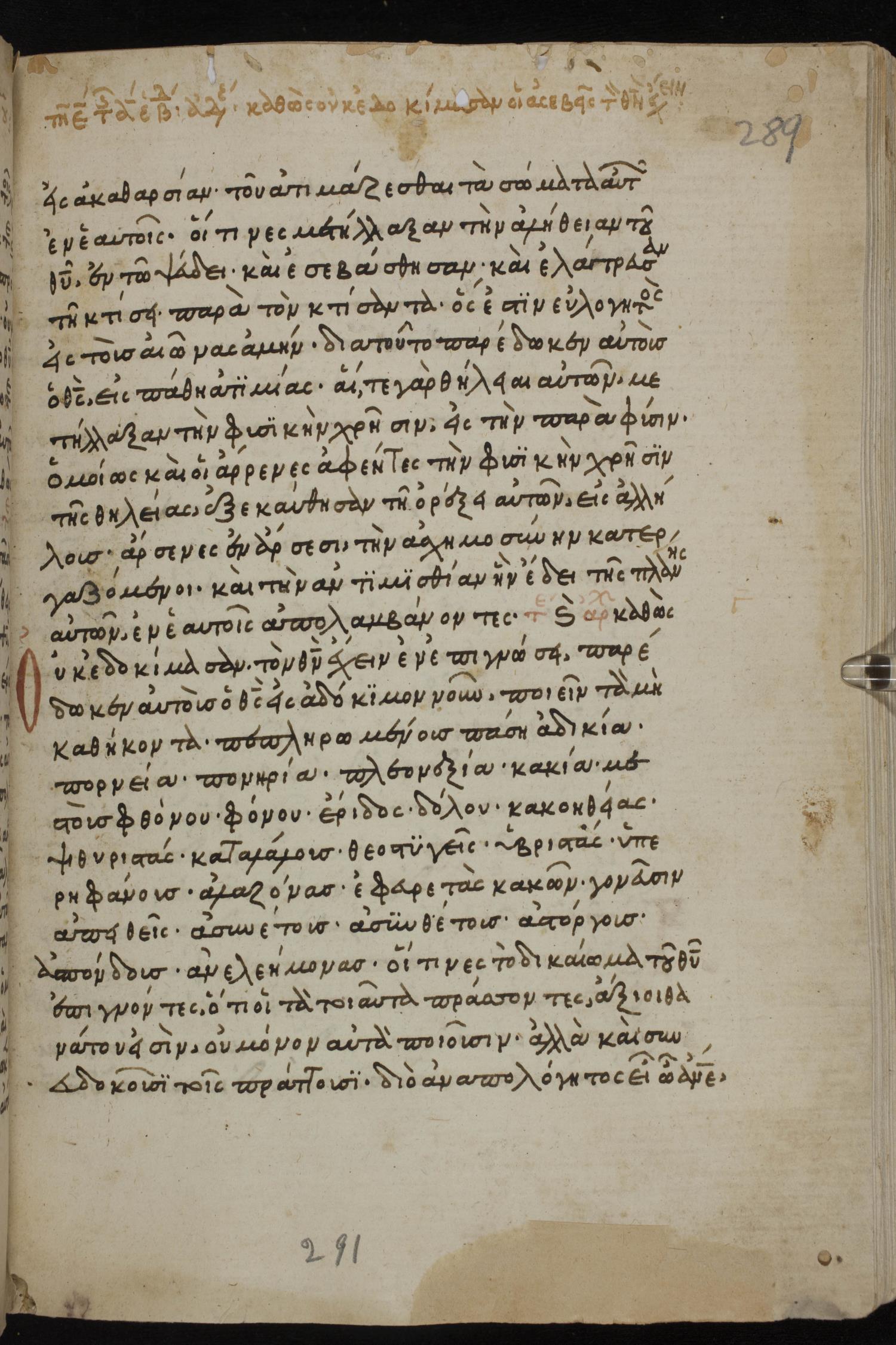 Thirteenth century minuscule of the Gospels, Apostolos, Paul, and Revelation on paper; 412 leaves, 1 column, 24-28 lines per column. Images were taken at the National Library of Greece in Athens.