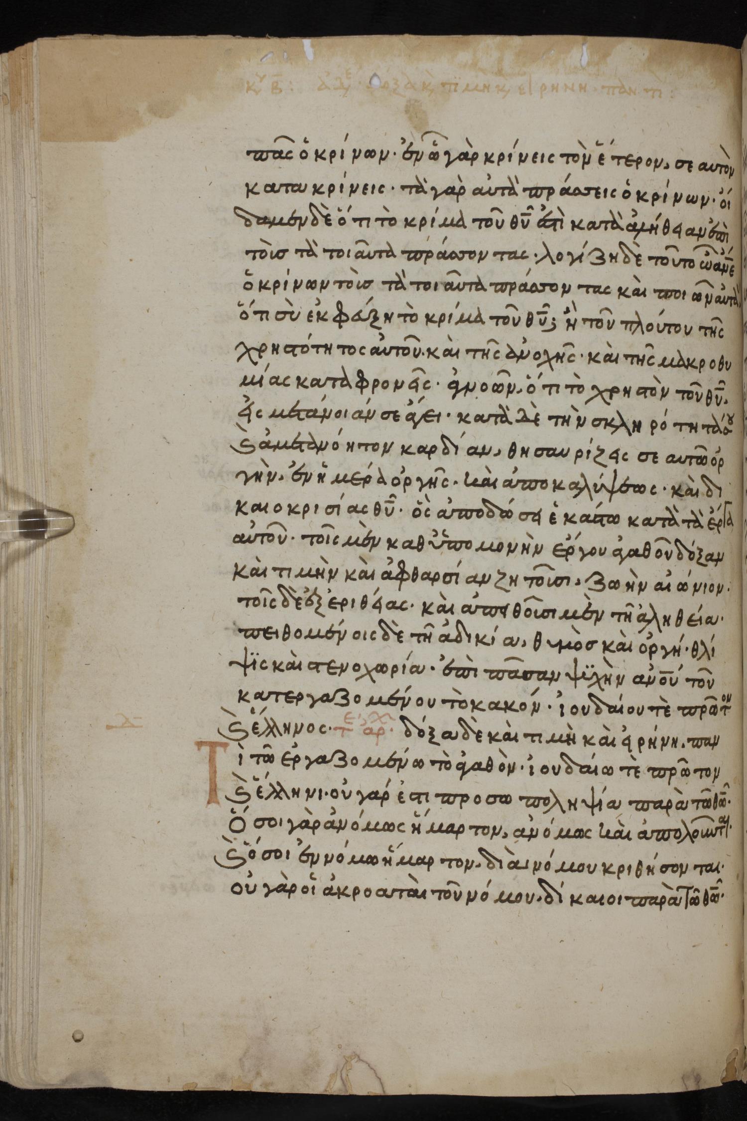 Thirteenth century minuscule of the Gospels, Apostolos, Paul, and Revelation on paper; 412 leaves, 1 column, 24-28 lines per column. Images were taken at the National Library of Greece in Athens.