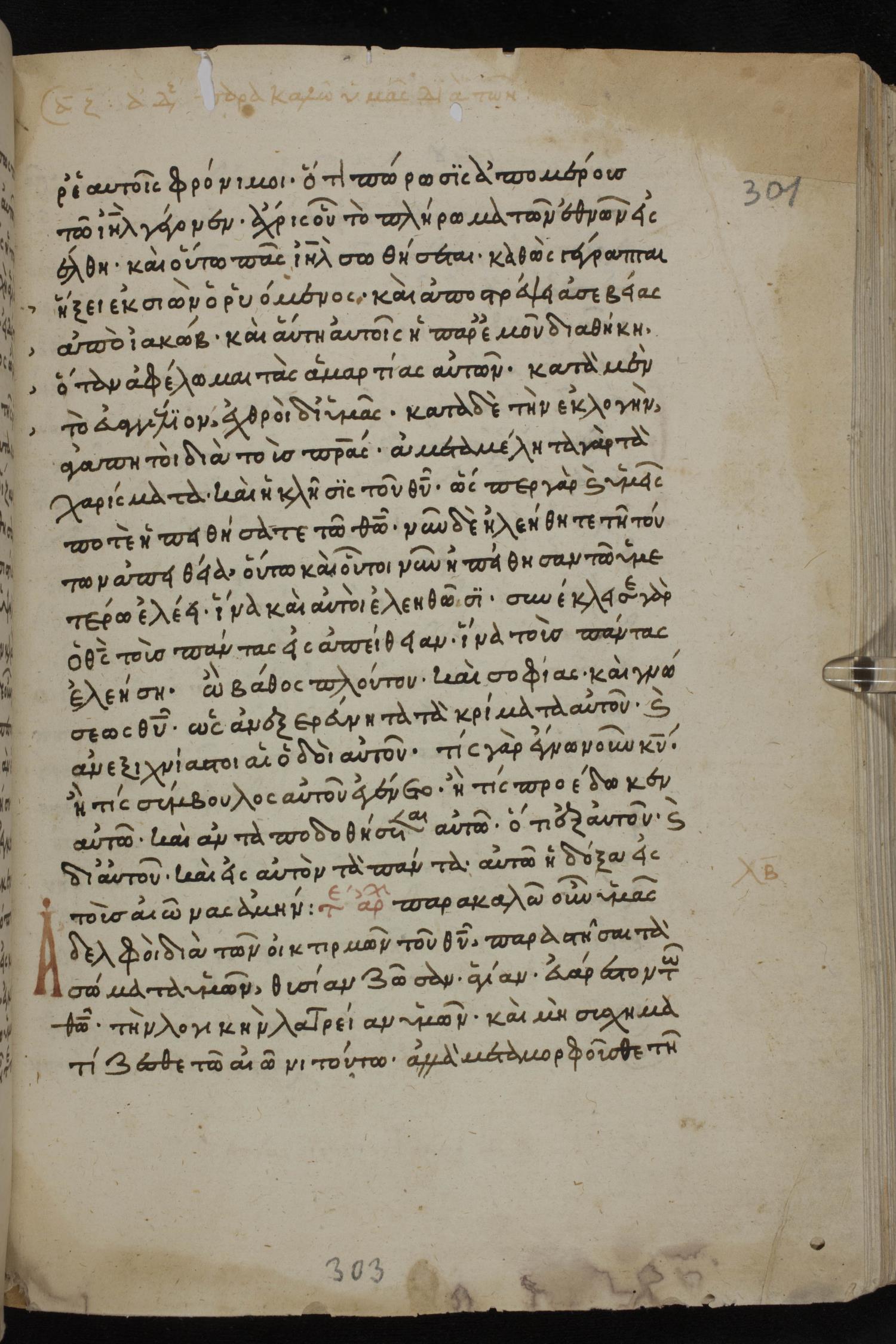 Thirteenth century minuscule of the Gospels, Apostolos, Paul, and Revelation on paper; 412 leaves, 1 column, 24-28 lines per column. Images were taken at the National Library of Greece in Athens.