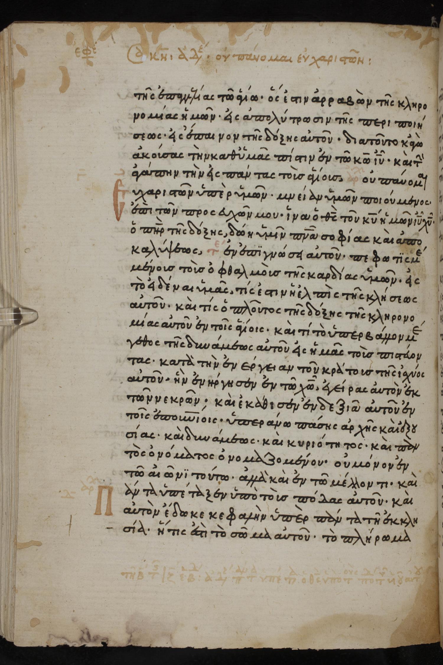Thirteenth century minuscule of the Gospels, Apostolos, Paul, and Revelation on paper; 412 leaves, 1 column, 24-28 lines per column. Images were taken at the National Library of Greece in Athens.